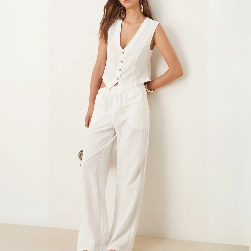 Vila linen touch cropped tailored vest and tailored wide leg pants