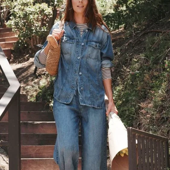 We loooooove a crisp, cotton poplin button-down. But we don’t love adjusting it 478 times daily. Enter: this shirt. It looks so simple, yet it’s the most perfect, untucked button-down shirt on earth. And the back makes it fashion, as the kids say.
