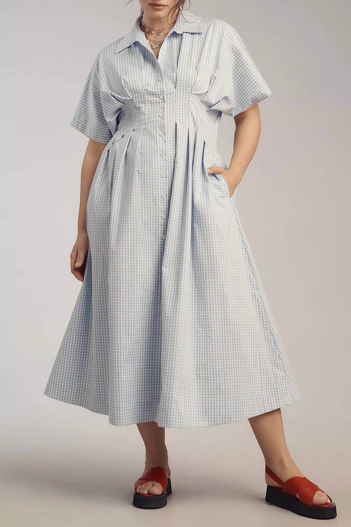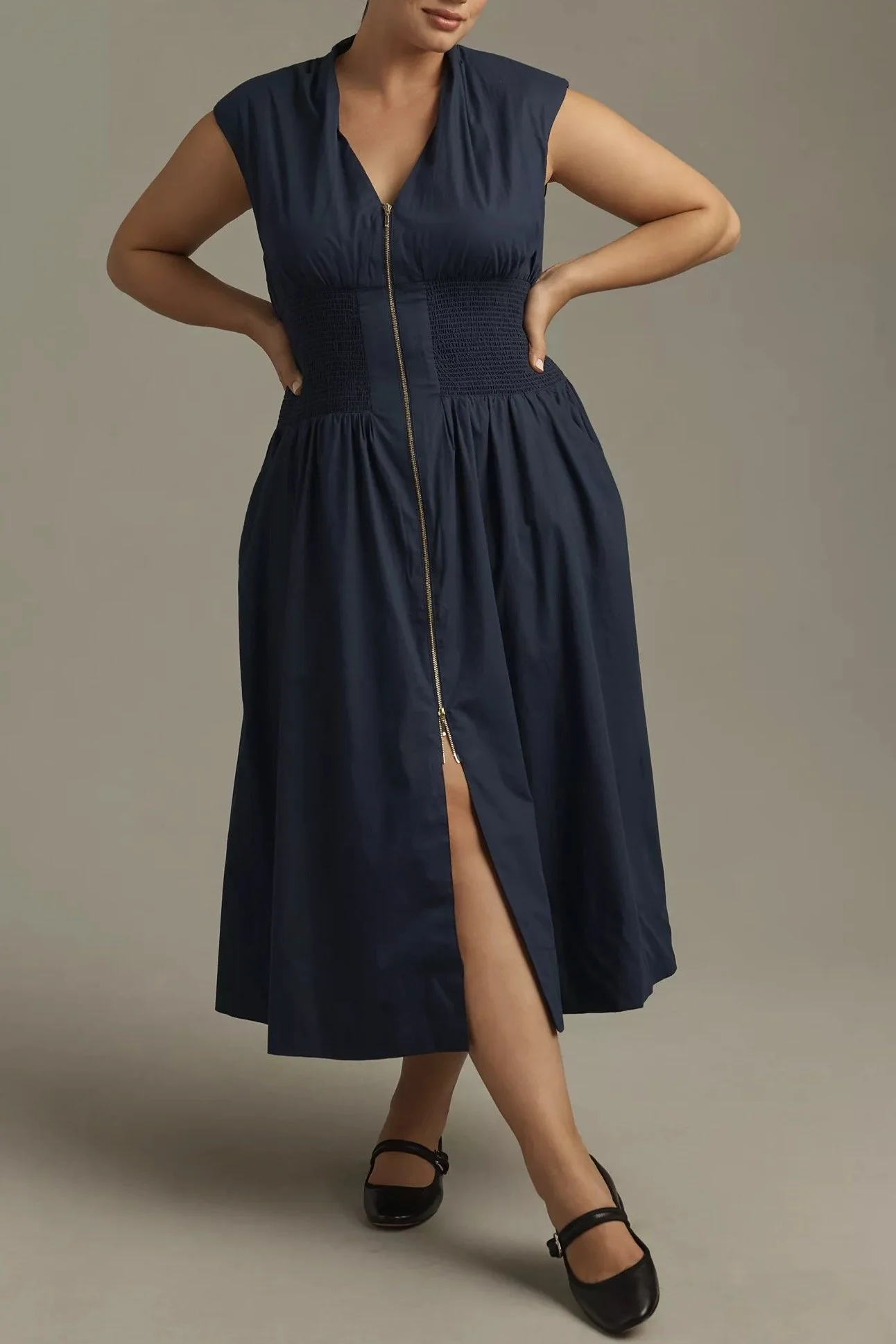 WHAT: Maeve The Tommie Cap-Sleeve Smocked Front-Zip Shirt Dress*