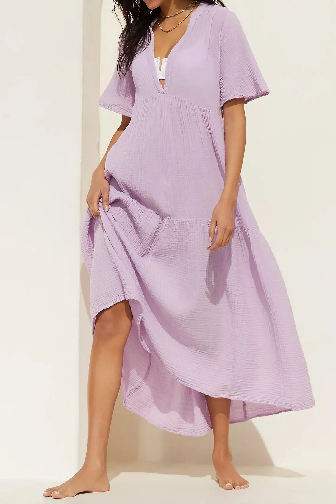 When wearing a swimsuit, we think about one thing and one thing only, what we’ll wear over that swimsuit that will make us feel comfortable but still summery and sun-kissed and like we can order a big, buttery lobster roll poolside and never once think about our bellies. This gauzy dress comes in so many colors and because of that neckline, it’s still alluring and lovely despite all that magical space.