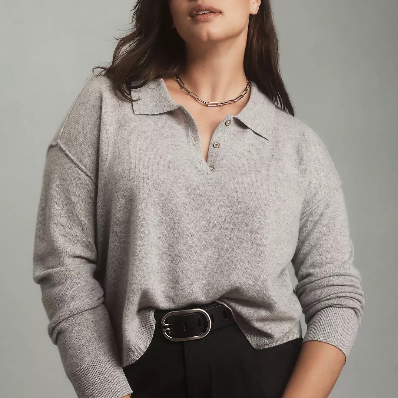 WHAT: The Jensen Cashmere Crop Polo Sweater by Pilcro*