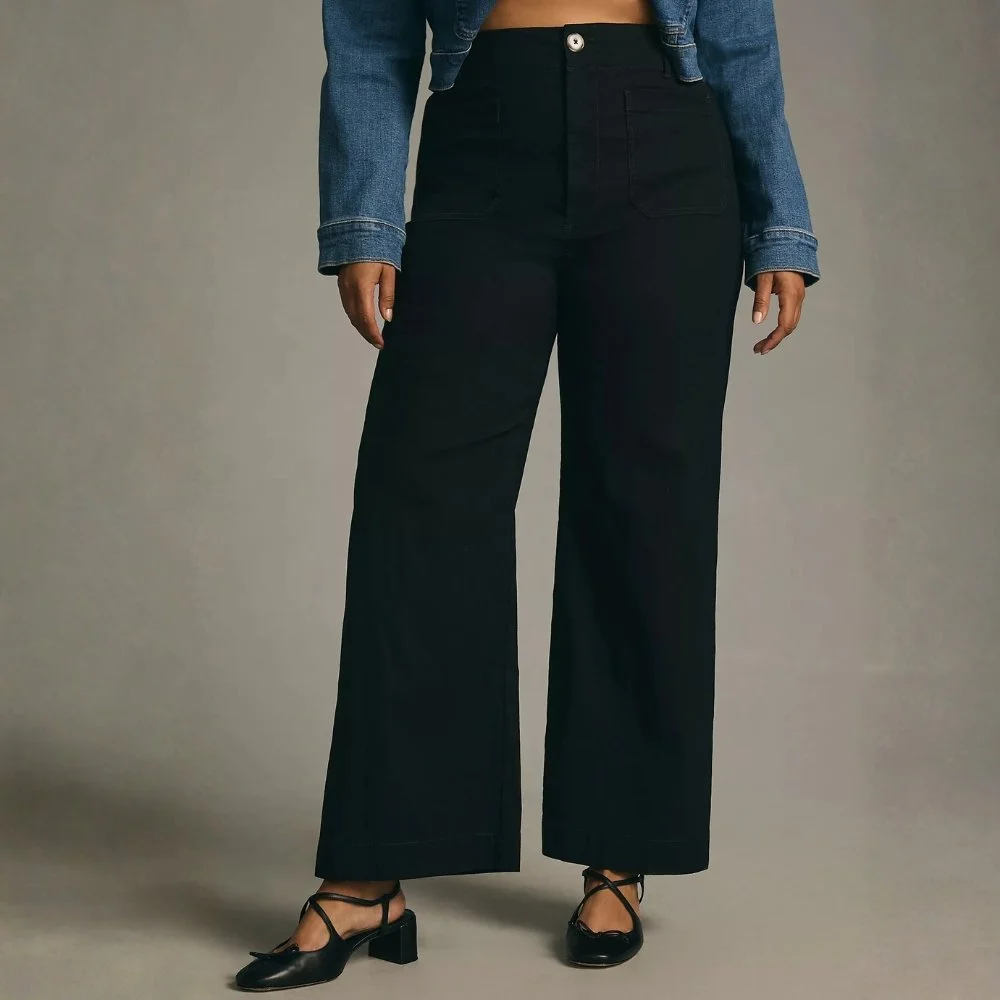 Why we love it: You might recognize that this pair of jeans from Anthropologie is similar looking to the first pair of pants we showed you on this list, and yes, that is because it has the same magic fit that holds you in while giving you plenty of stretch and breathability. Honestly, if you’re curvy and don’t own a cropped jean in this sailor-ish shape you have been denying yourself one of the most complementing jean cuts around. It’s very French lady chic, so we of course wear it with the aforementioned marinière. It sizes in plus and comes in 3 washes. Not to send you scrolling up again, but you can see one of us wearing the light wash with #3 on this very list.