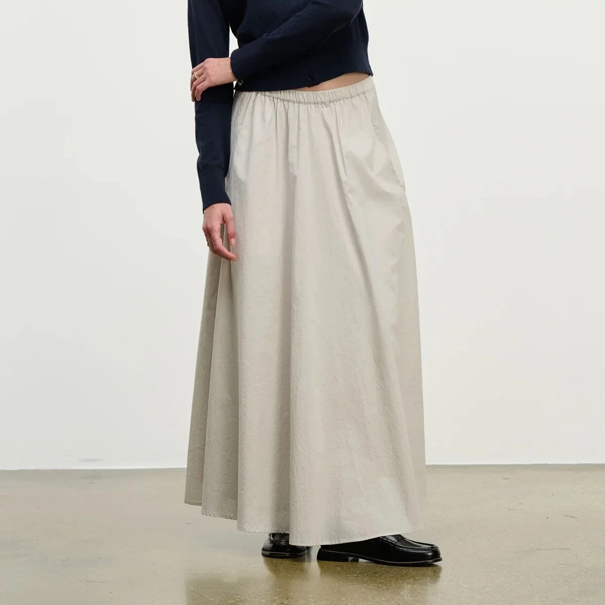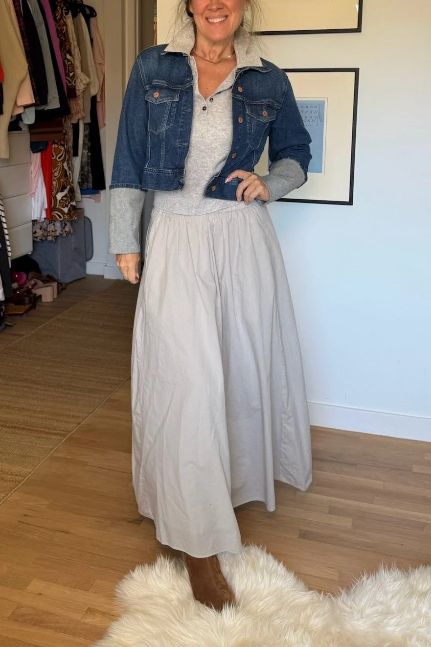 Why We Love It: This skirt checks all the boxes for comfort. It’s a light, breezy cotton poplin with an elastic waist. But because it’s a proper maxi that goes all the way to the ankle, you look lithe and elegant whilst feeling like you’re in baggy pajama pants. You’ll be shocked at how many things go with the stone color, and it’s lined so everything looks very smooth and lovely.