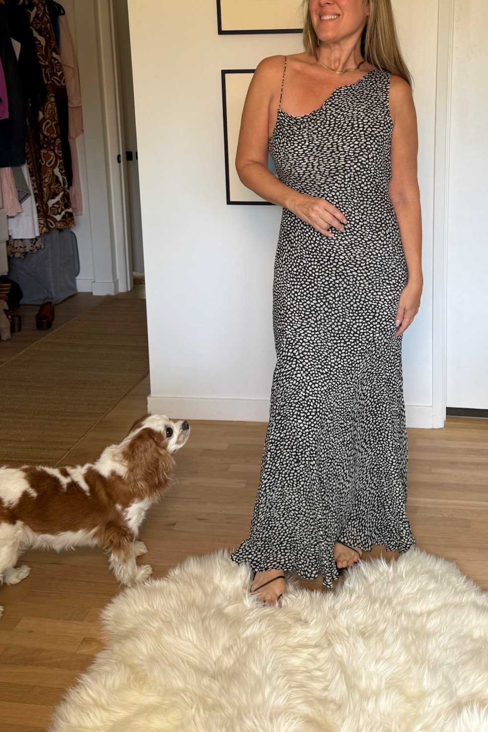 WHAT: J.Crew Collection Asymmetrical Cowlneck Dress In Spot-Print Chiffon*