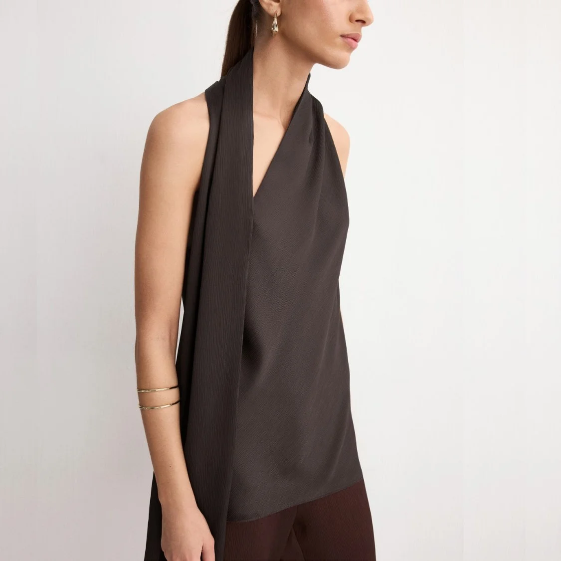 It will get hot out, and when it does, be ready with a sleeveless top you can A) happily wear out to dinner and B) feel great about in terms of fit. This sort of brilliant, drapey blouse comes in several colors we really love, including a dusty pink*, and looks gorgeous both tucked and untucked.
