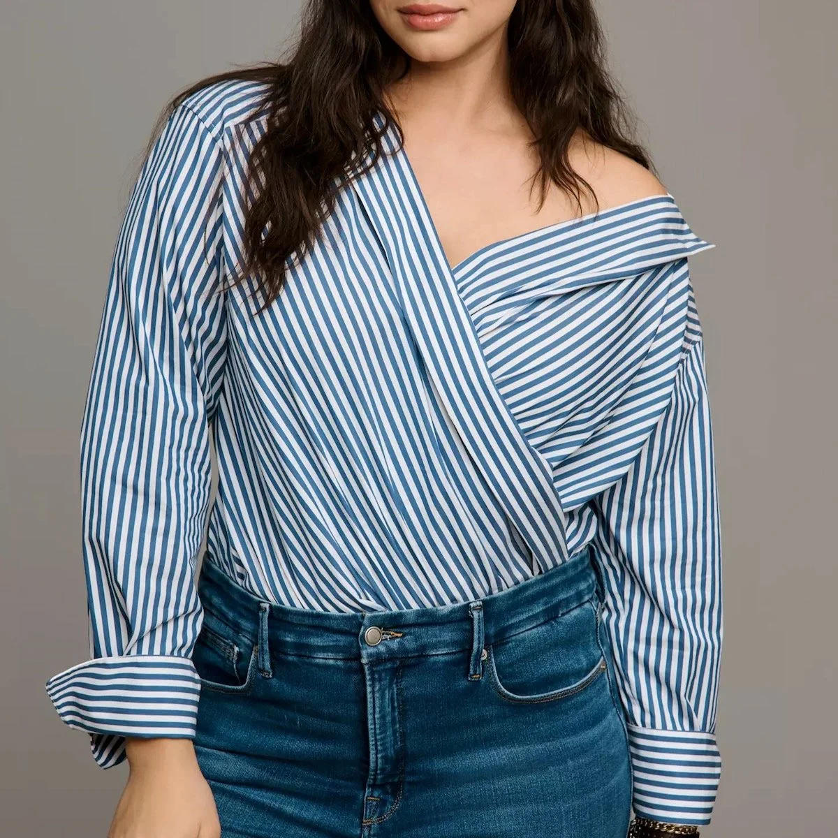 We could go on and on about why stripes magically make everyone look sophisticated and put together. In fact, we did do exactly that HERE. But this top is also special because of its cut, which couldn’t be cuter on thicker waists and arms.