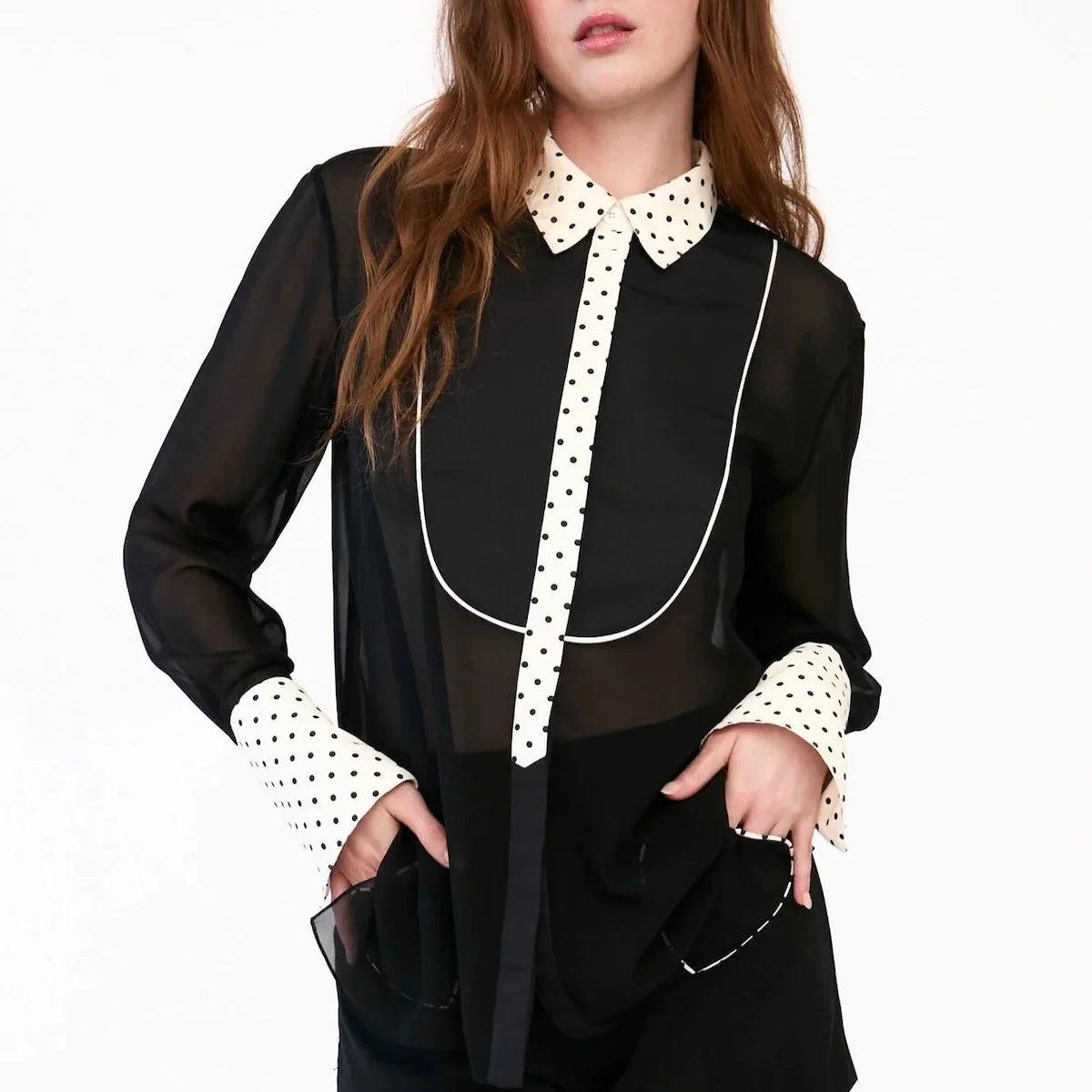 Fine, it’s a little bit country, a little bit rock and roll, but also somehow a little bit … Parisian? The sleeves and details make this top look wildly expensive and unlike anything else, but the shape is actually incredible on curves. It’s designed to be worn either tucked or untucked, and the sheerness means you can wear it over a black cami or a lacy bra to determine your own personal comfort/ allure level.
