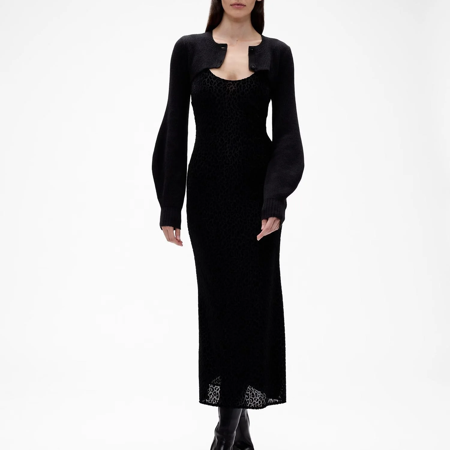 When we want to show our oh so carefully chosen top or dress but are also always freezing and not in love with showing our arms, we wear this, and it’s a bit of magic. Also comes in black.