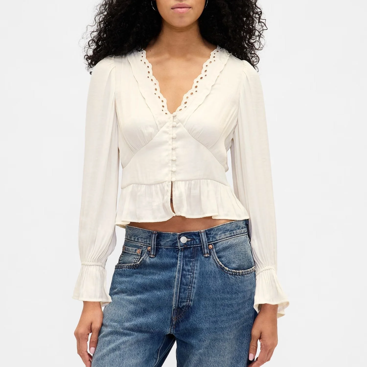 WHAT: Cotton Poplin Ruffle-Back Shirt*