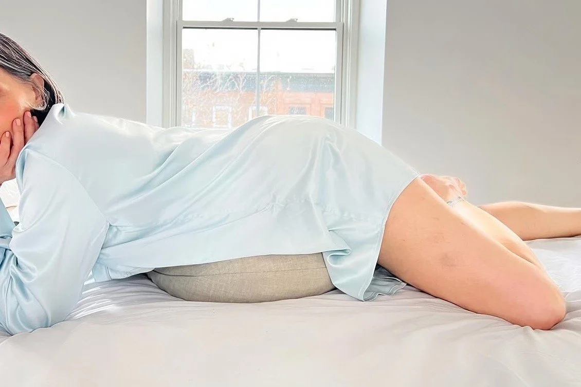 A pillow is KEY for comfort in almost any position after 40. Why? Estrogen plummets, which of course creates dryness, but it also means pelvic floor tension, our vaginal walls are thinner and less flexible, and that trio often equates to pain. This pillow means better pelvic alignment so we can fully relax, and it helps to set up everything at the perfect angle. The difference is astonishing.