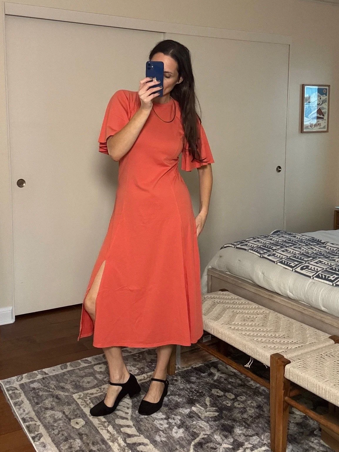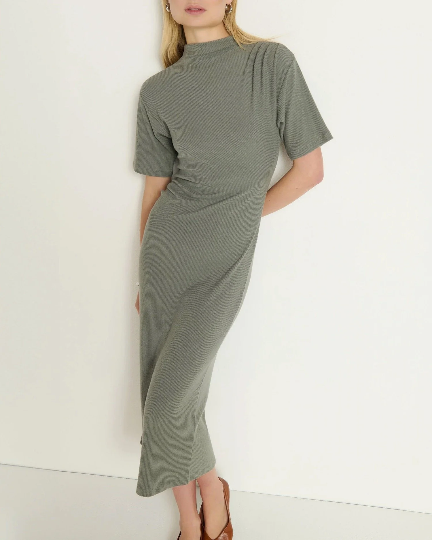 The idea of wearing a slinky, fitted dress lingers in our deepest desires, but most feel like they’re made for 6ft models with sticks for arms, small, perky boobs, concave bellies, and zero hips/butts/thighs. This one has a magically soft, ribbed material that’s thick enough to cover every lump and bump and make us feel completely held in. The ruching is so flattering on your midsection without ever clinging, and the sleeves cover the thickest part of the arm. Last but not least, the high neckline means we can wear whatever comfy bra we like. Bless!