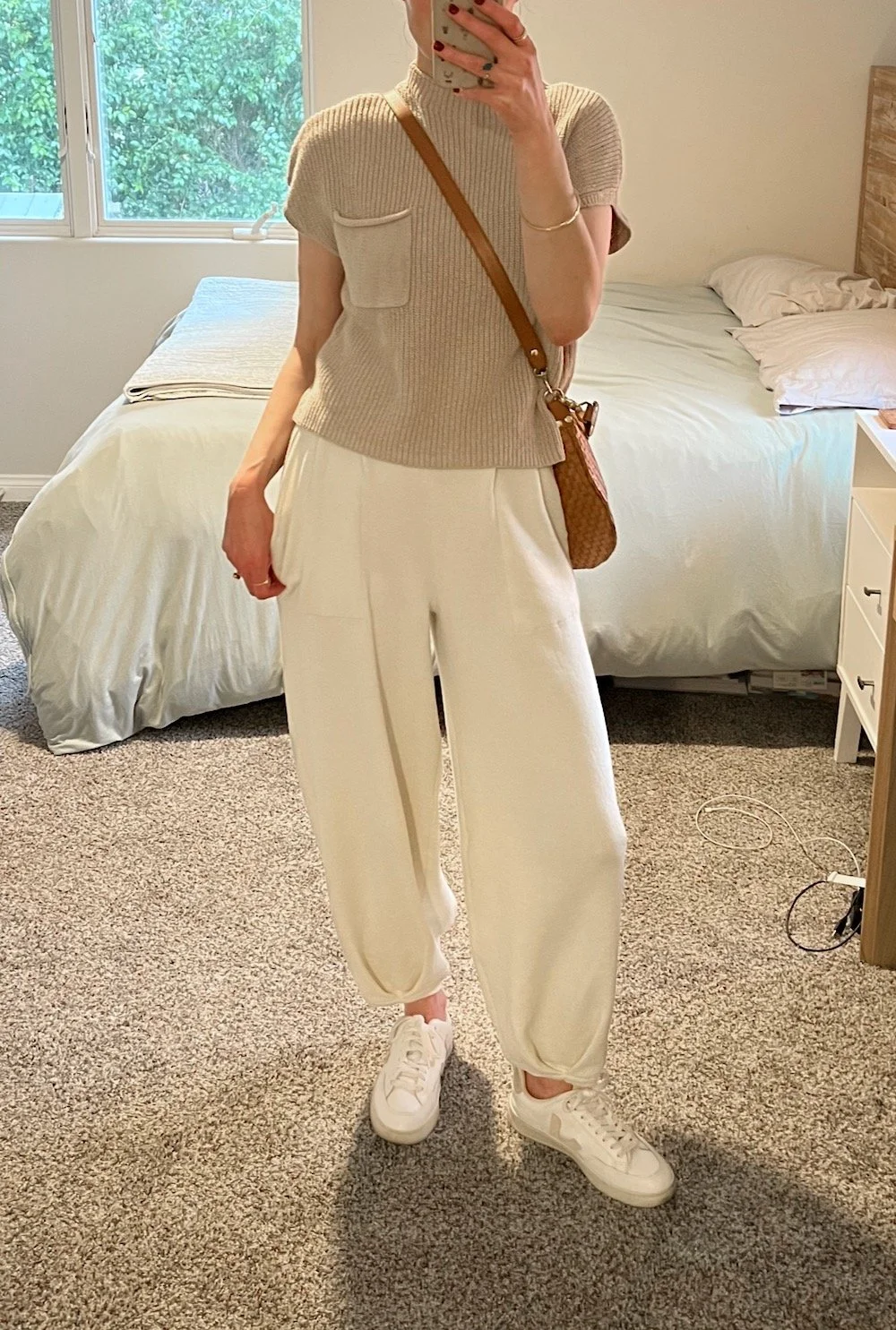 Everything on this list up to now has something in common in that it all looks like nice, tailored clothes you can happily wear out, but every single piece feels like you’re in loungewear. So it’s fitting that we’d end with the thing many of us wear most, which is actual loungewear. Well, sort of. It’s a set. A set can technically be loungewear but it’s miraculously considered chic. Especially THIS set. We wear it everywhere, and it might be our favorite thing. Here’s why.