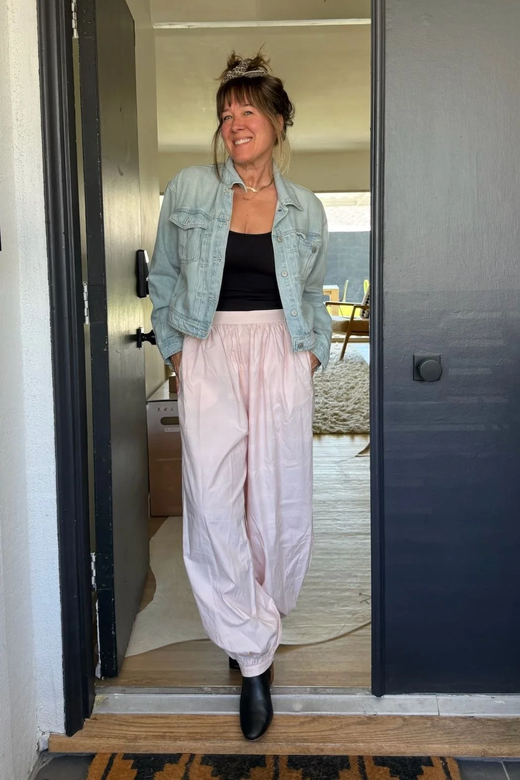 Sometimes you just need to wear pink hammer pants and carry on with your life. I get no fewer than 4 compliments from women when I wear these out, and typically no fewer than 4 verses of “U can’t touch this” from my husband. But it’s becoming grotesquely hot already in Southern California, and as someone who Doesn't Show My Knees™, I like to gather all the breathable, poplin things I can so I don’t expire in the 100-degree heat—and these are gloriously cooling. They don’t really do me any favors in the butt and from the side as you’ll see, but I actually think they’re quite flattering in the front and the front is all I see of myself! Sort of like the pants version of just curling the front pieces of our hair in high school.