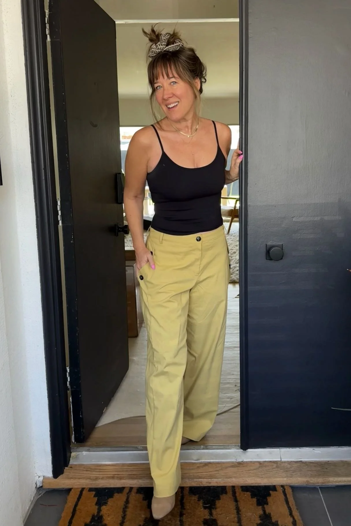 I am never not looking for the perfect pair of comfortable lounge pants with a WIDE WAIST BAND because narrow elastic waist bands are created by the devil himself. By the time evening rolls around after a full day of eating, narrow, elastic waist bands are typically digging into my stomach in a highly unflattering and deeply uncomfortable way. Whereas this wide, flat band is both skimming no matter the pooch level of your stomach, and also feels like nothing. The very subtle bow shape that makes my legs look astonishing slim, the material is that super-thin jersey that is superior to all other loungewear fabric, and in a pinch (aka when I’m bloated and on my period) I will be pairing these with this boot and this blazer and going to a fancy dinner. I also bought them in mustard*!