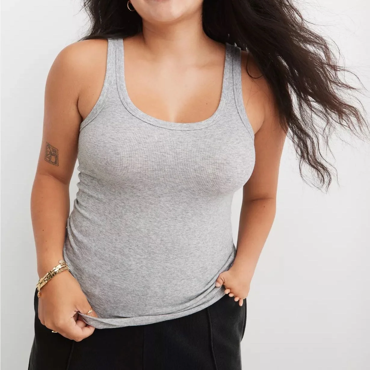 Why we love it: We could show you a $75 tank from a high-end brand, and admittedly, as tank people, there are some of those we love. But this one costs as much as a fancy matcha drink, has the most flattering scoop neck line, and we reach for it almost daily.