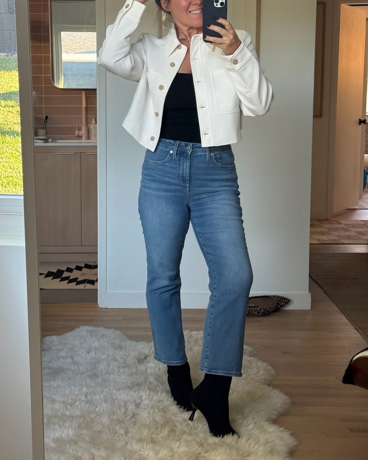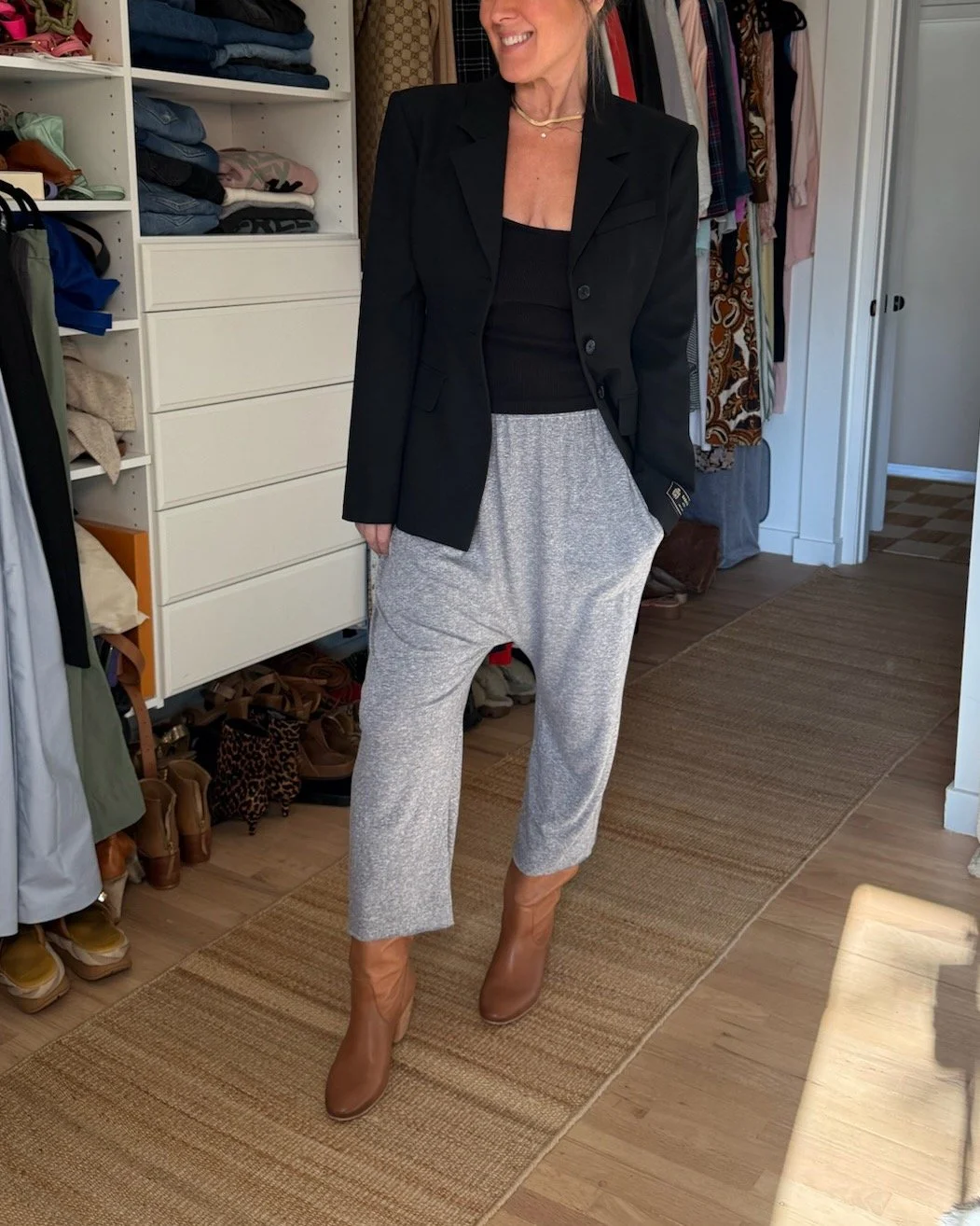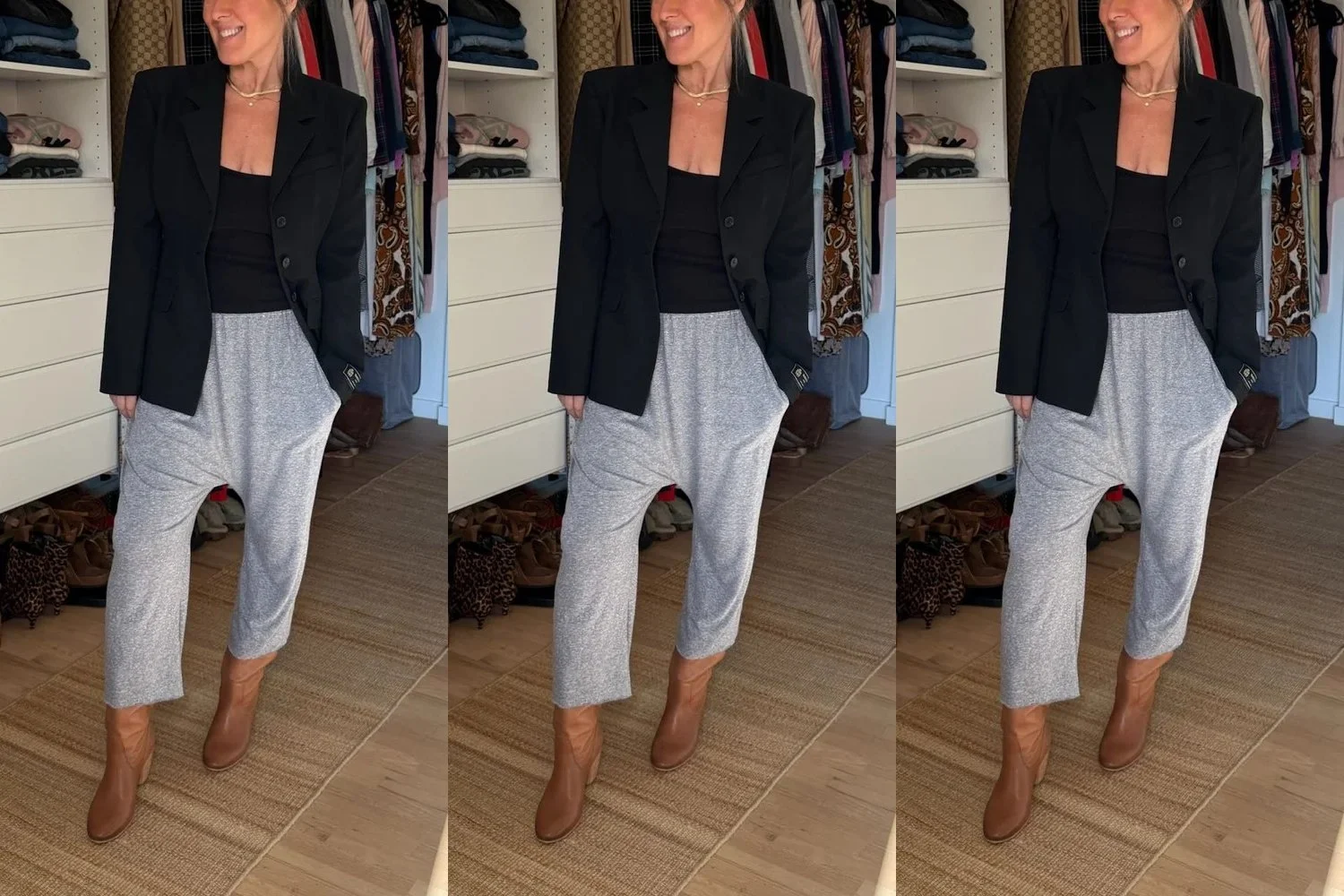 A good crop will hit our pants right at the hemline, so it doesn’t show our tum, and we don’t have to wrestle with a tuck to look polished. These tops make waists look smaller and legs look longer because they start higher on your frame.