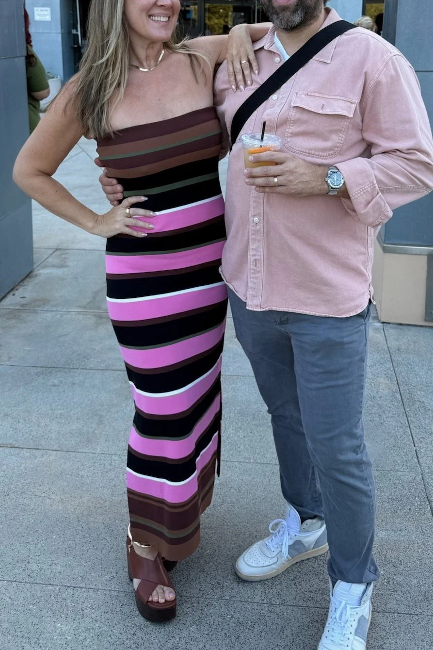 As you can see from the above photo, this is one of those standalone dresses that’s maaaade for a date night. However, what makes a stretchy column dress like this so magical is the fact that that it holds us in in all the right places, hoisting and smoothing and flattering all our curves. And because of all this support, we feel completely comfortable in it.