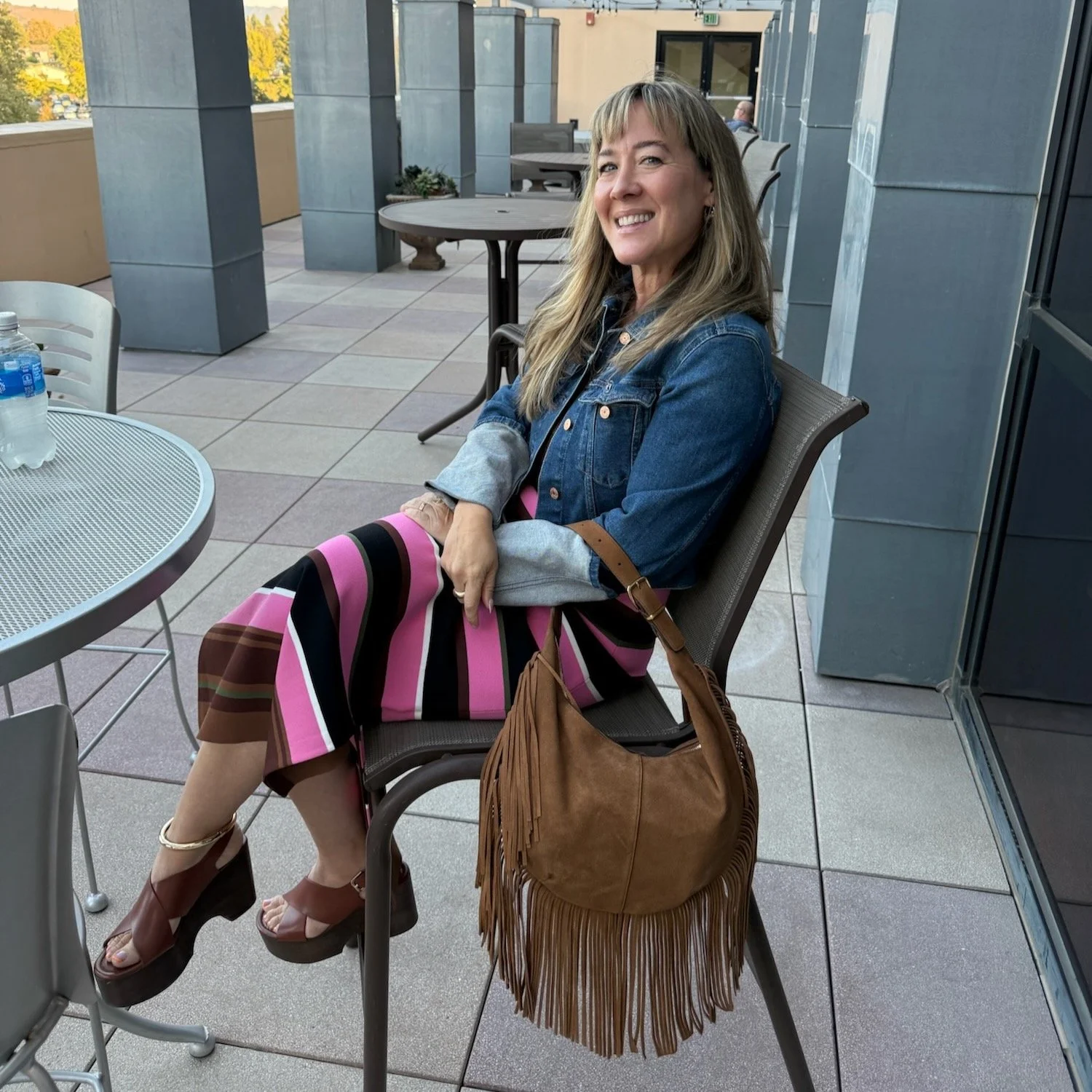 In this case, the dress is special in and of itself, but we can pretty much get away with wearing a sack if we have the right accessories. We have to mention these two unique statement pieces which instantly elevate a look: THIS* fringe bag and THIS* chunky ankle bangle.
