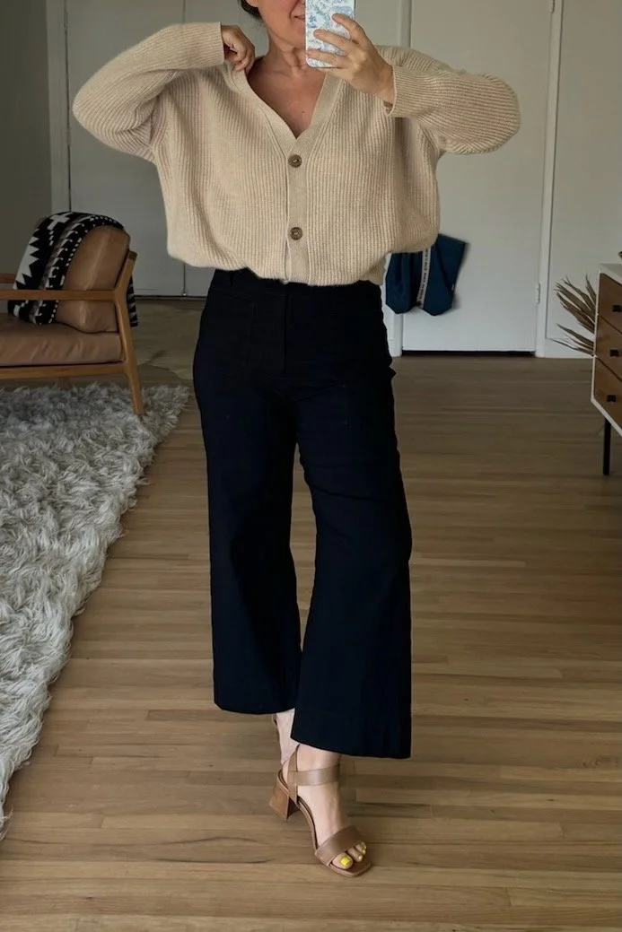 Yes, this is the same divine cardi from above in a different, perfect color. But how brilliant is it to wear it as a top and tuck it? We actually use THIS belt-like contraption, which makes it so you don’t have to stuff the bottom of the sweater into your pants, and you always have the perfect tuck. It’s honestly life-changing.