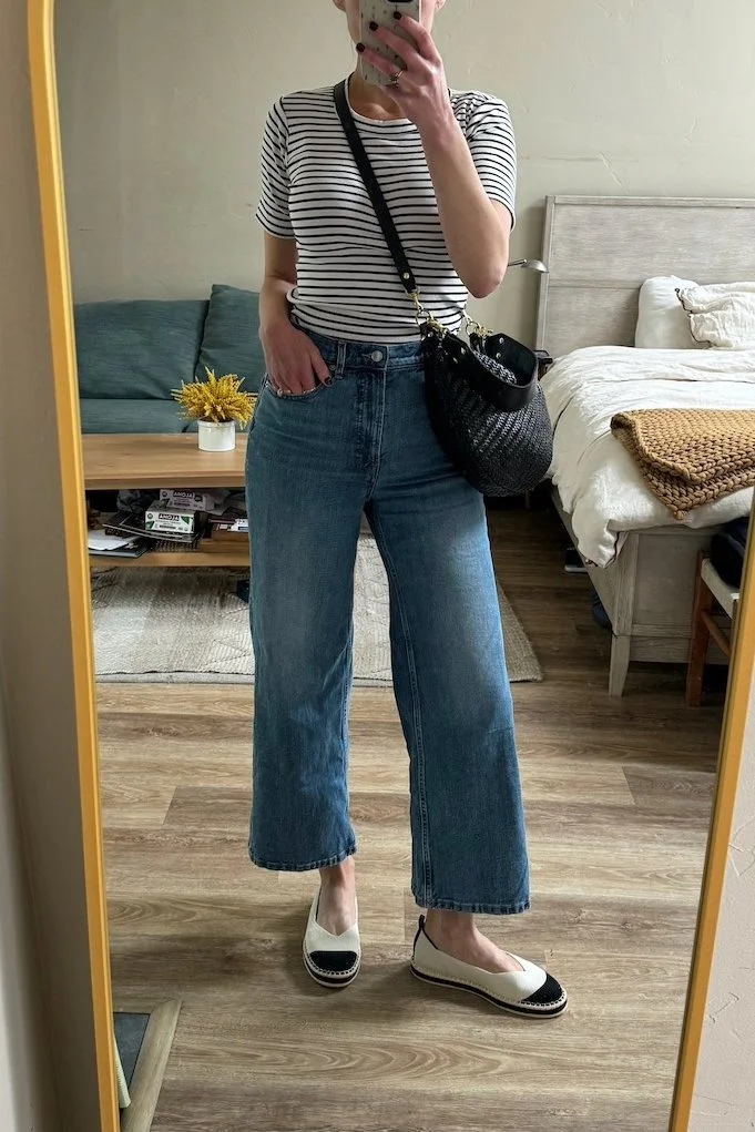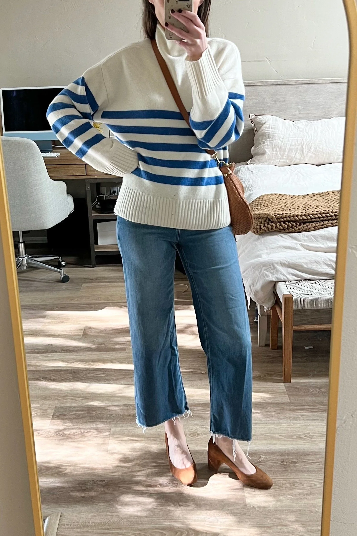 Why: Stripes will always look chic, always “quiet luxury,” and will defy the very laws of trendiness. They’re the perfect compromise between a neutral and a print, so we’re not bored, but we still get to look classic and like we care about our clothes. Plus, a quality striped sweater makes everything else you’re wearing look more expensive, especially when it comes from THIS* brand.
