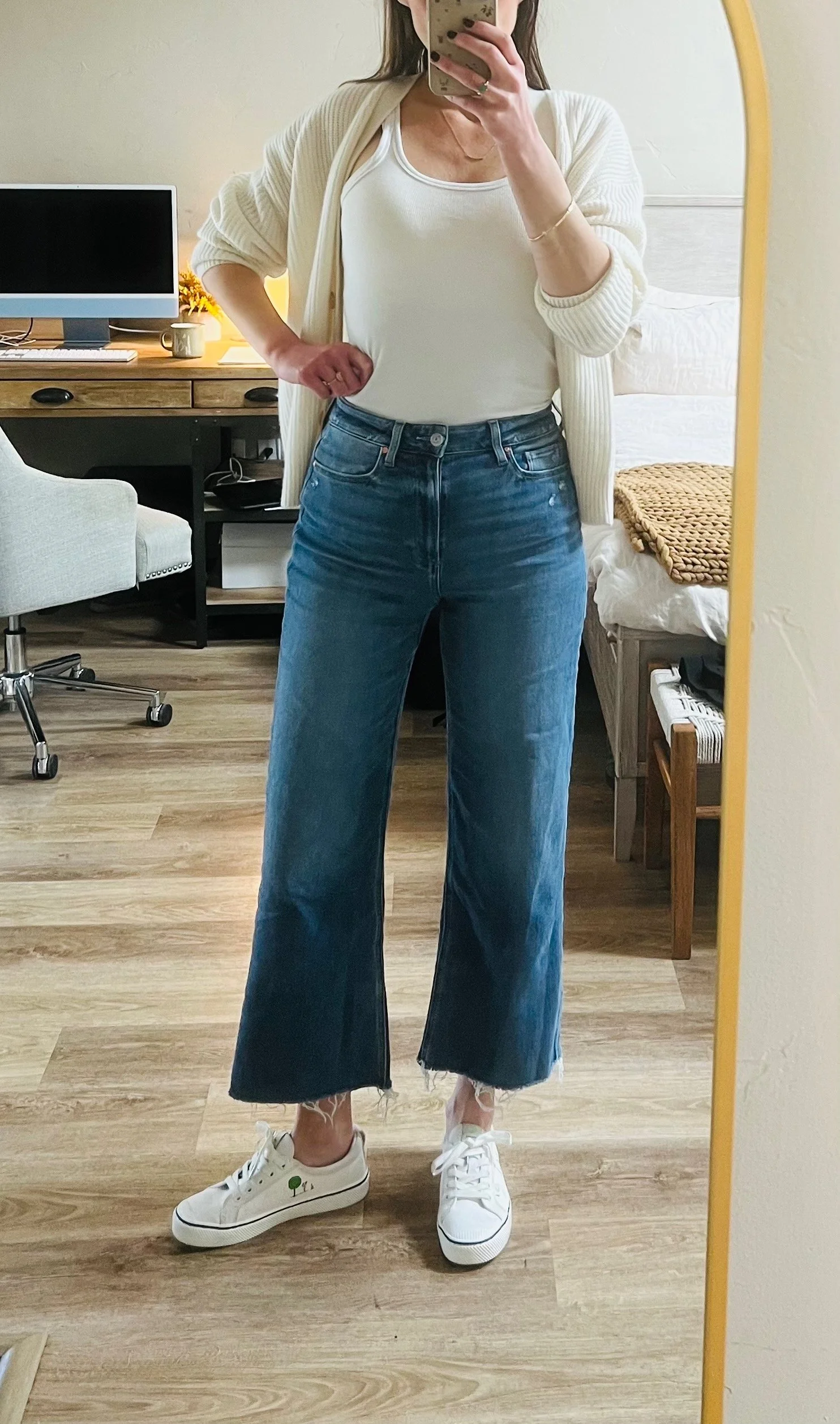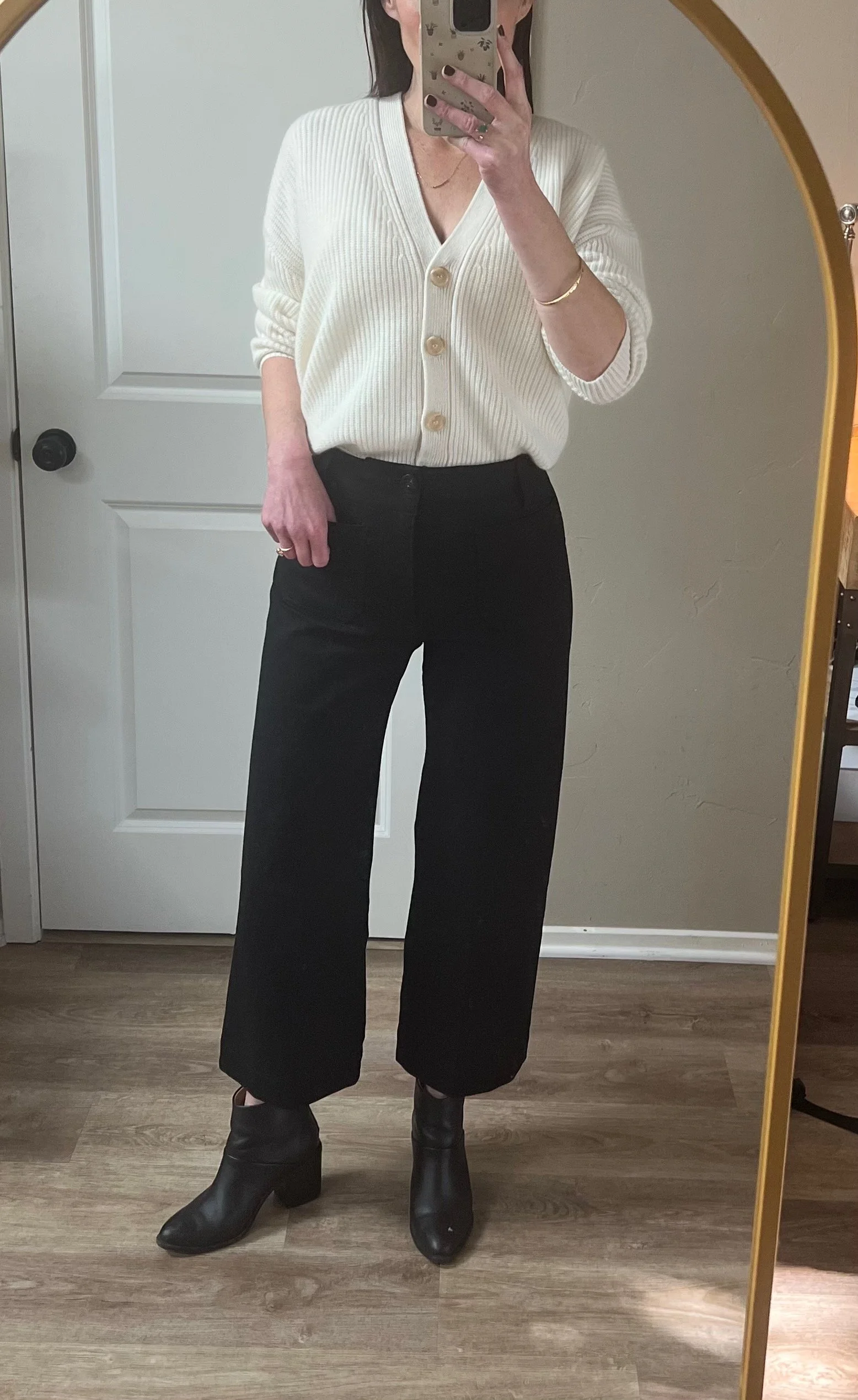 • The Best: I coveted THIS* cardigan for years before I bought it. The price was … difficult. But as soon as I did, the cost per wear plummeted, because I can’t remember ever grabbing a piece of clothing this frequently. The quality is on a whole other level, which means it will laaaast! I own it in THIS* slightly boxier, cropped version, but THIS* famous, longer style is great if you like to feel fully swaddled or want a little more coverage round your bum.