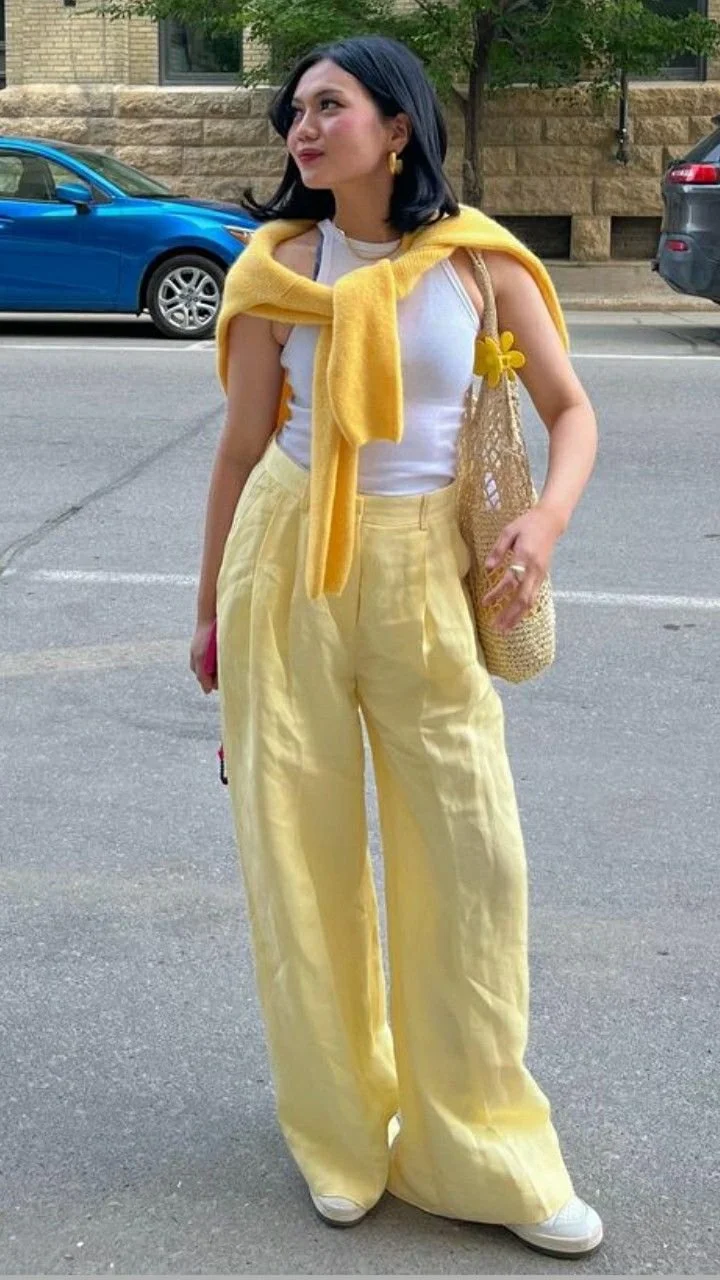 We’re not trend people. We prefer classic and timeless clothes. But a “moment” of color can be a thrill, and so, we are definitely on board with the butter yellow trend, especially in the form of pants!