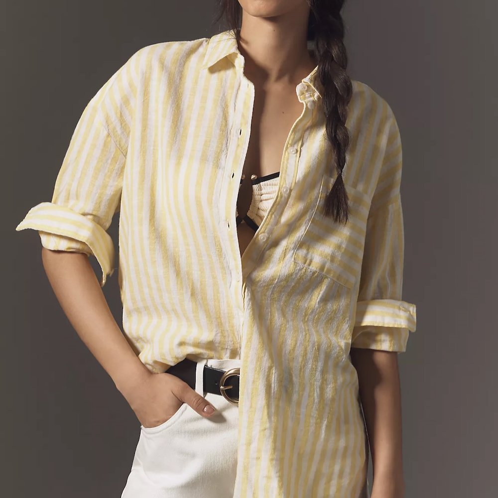 We write, probably too much, about the Colette pants from Anthropologie, but they look amazing on every woman and each year, they come out with more colors and lengths and fabrics and patterns and so, how are we expected to stop? And how are we expected to not purchase this soft, yellow, linen pair that fits like sorcery and screams of summer?