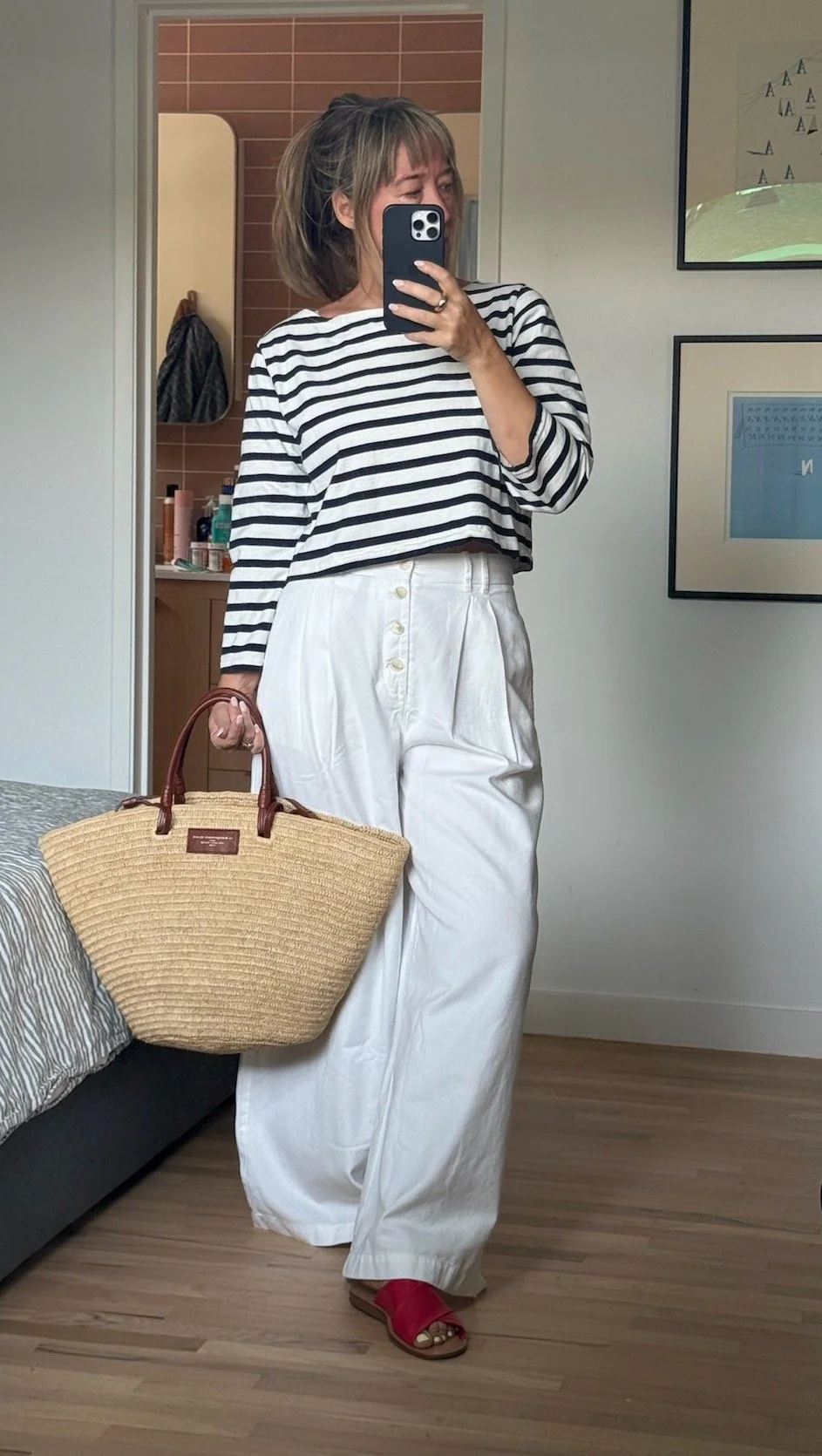 It’s a cross between coastal grandmother and French-lady chic, so a bit like you just stepped off a sailboat in St. Tropez.