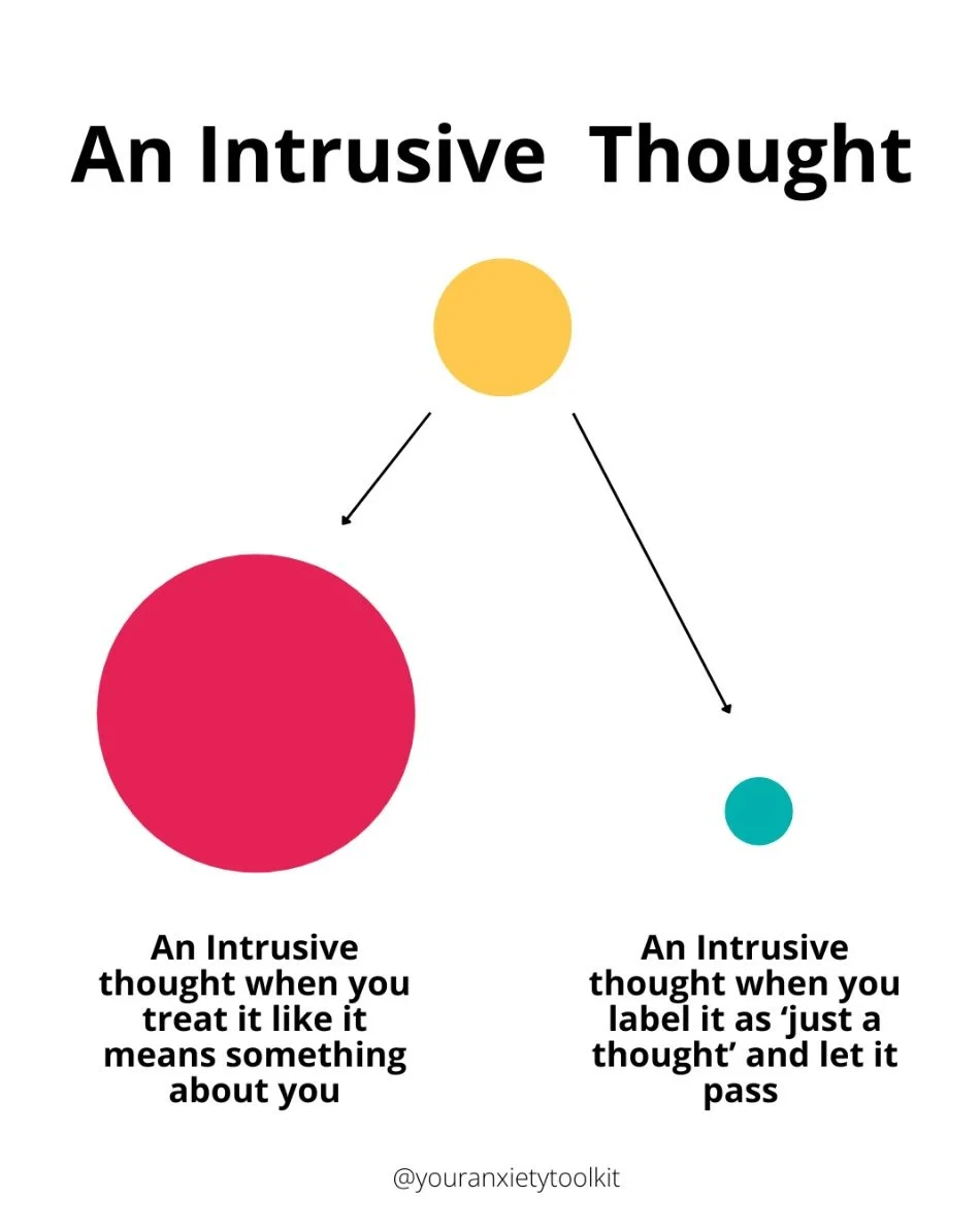 When working through treatment for OCD, the practice of putting my thoughts into these categories helped me immediately identify them as symptoms of an illness as opposed to realities I must deal with. The same can be done with anxiety. Anxious or obsessive thoughts are always going to find their way to us, but our ability to identify them as “anxiety” is what enables us to let that thought move right along rather than clinging onto them as part of our identity or belief system.