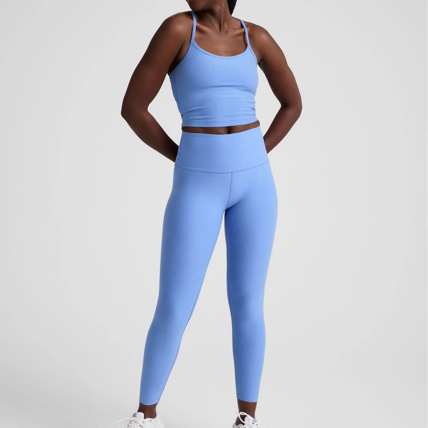 First off, it has the softest, butteriest fabric that’s so breathable, and yet it smooths all bumps and holds you in like nothing else we wear. When we put on the full set, we feel a pulse of readiness that propels us to move more. We feel like people who work out. And weirdly, we look our best, which also sparks our confidence to get going. It’s a head game, but it works.