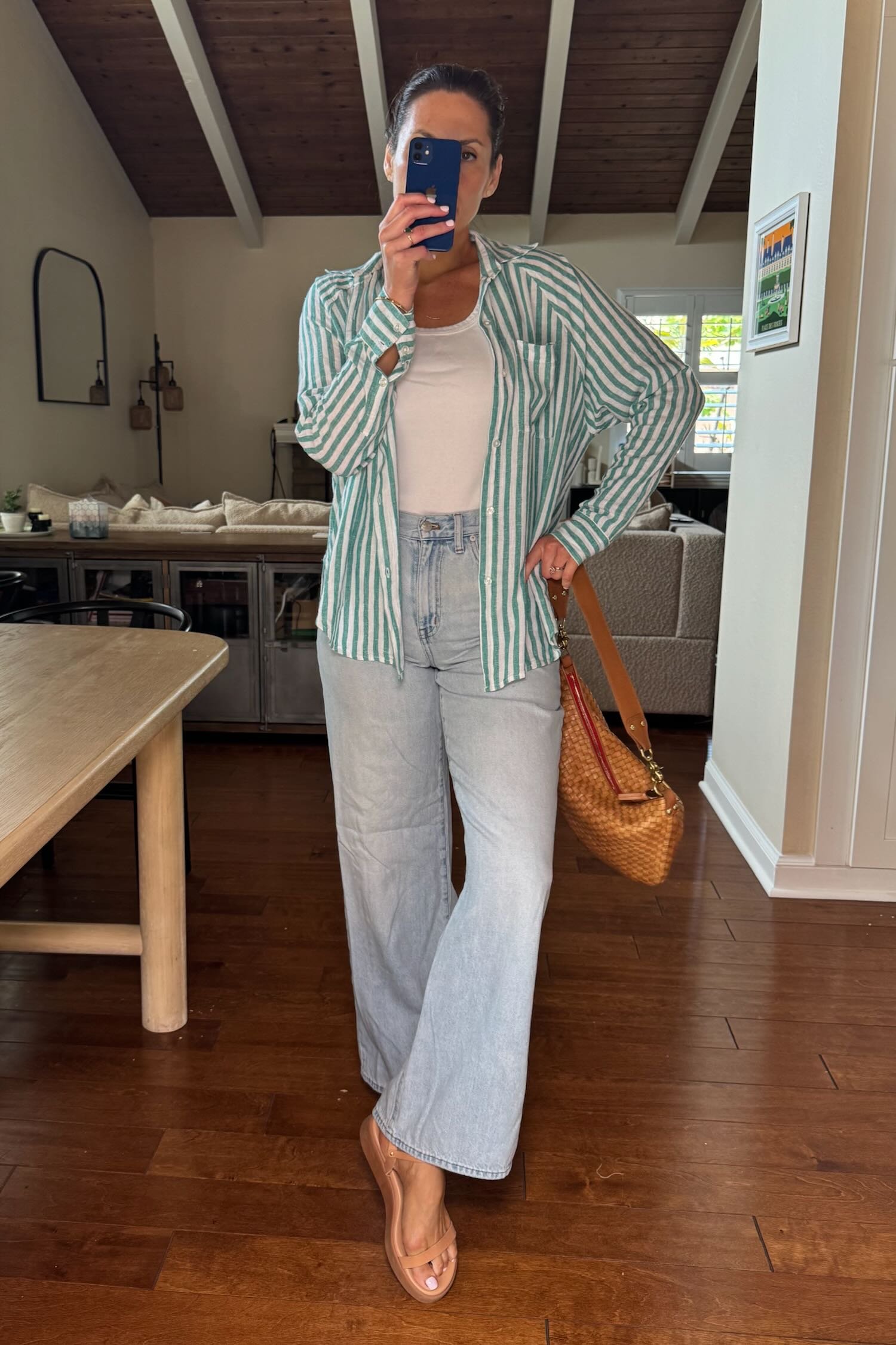 Why we love it: Gingham is one of those prints that works like a neutral but makes a look 17x more interesting. This one is so light and whispery, we can wear it in the heat, open over a tank or tied at the waist (yes, there’s an easy way to do this without it poofing out, which you can learn in 3 seconds here). It gives extra arm and tum coverage without making us sweat. We love that the black and white matches with everything, including black, but it comes in a very pretty tan gingham HERE.