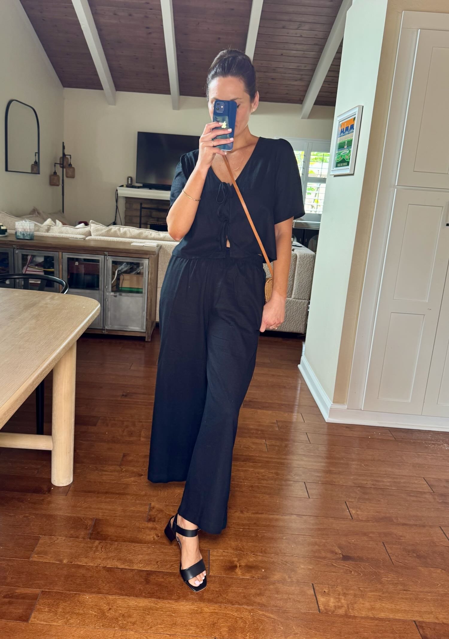 Why we love it: A set is like a “clean girl” uniform. We don’t have to think at all, and poof, we’re put together. This is even more true in the spring and summer when we don’t have the luxury of layering. This set has the very much appreciated benefit of being a shape that gives us arm and belly coverage, but we still quite look cool and polished. They smartly have a black band of fabric beneath the ties at the top so it doesn’t show skin, but you can always wear it over a black tank* if you don’t like that tiny sliver of skin that shows at the bottom