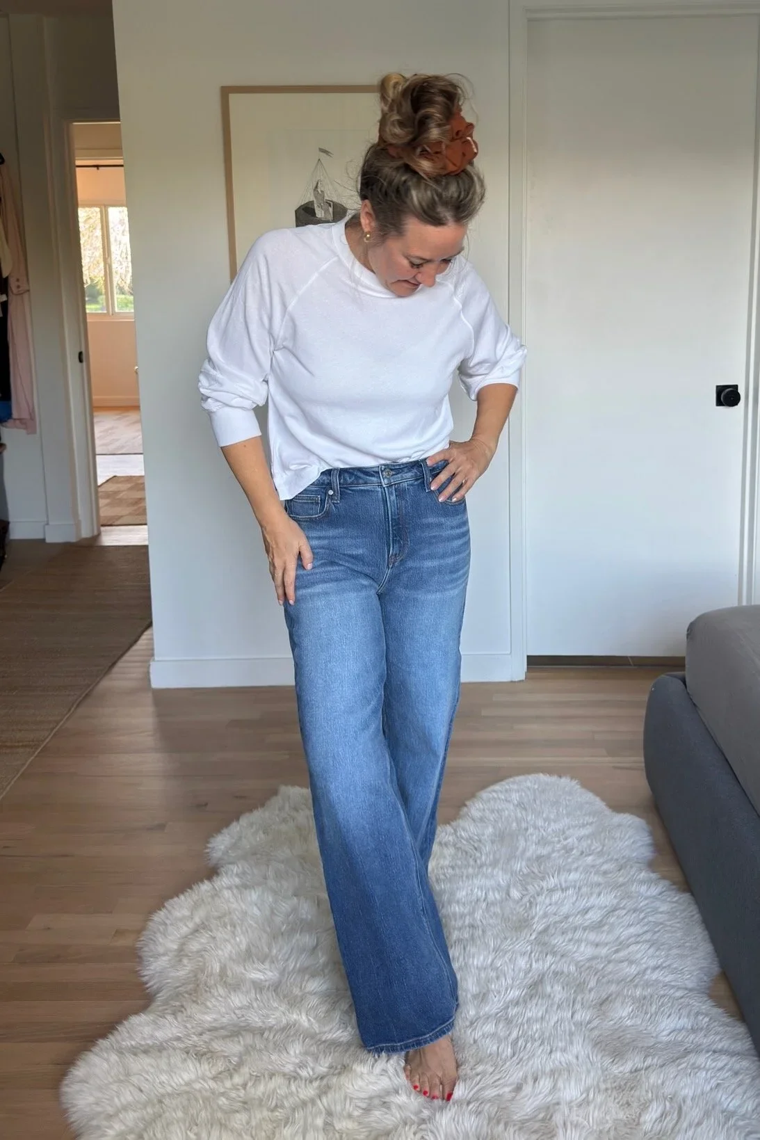These jeans are unreal on curves. They may as well be the training wheels for wearing white pants, because the fit is roomy but so, so chic.