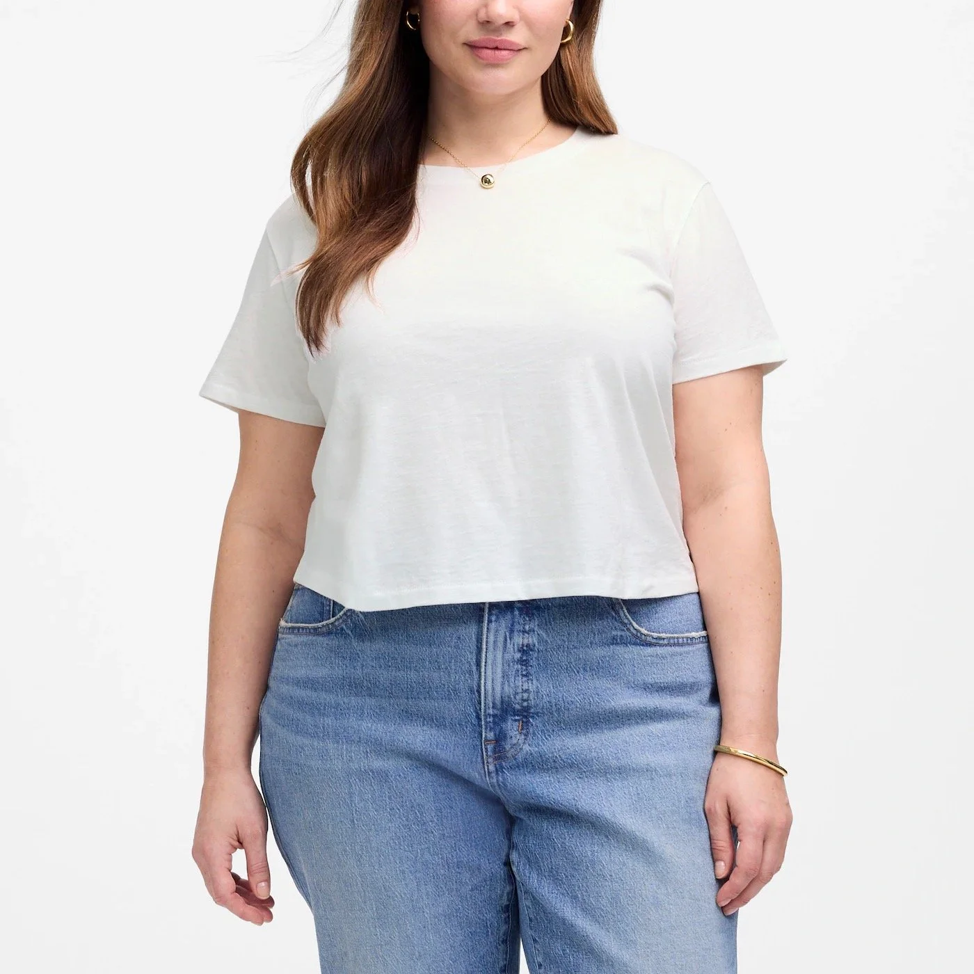 Of course we’re afraid of crops. We grew up in the Britney era where midriff pretty much meant bra length. Plus, now we’re over 40, and our bellies aren’t shredded or snatched or even just un-bloated 65% of the time, giving us even more reservations. But cropped things are not scary. They make our waists look smaller. They make our legs look longer. And they don’t need to be fitted to make us look cute instead of frumpy.