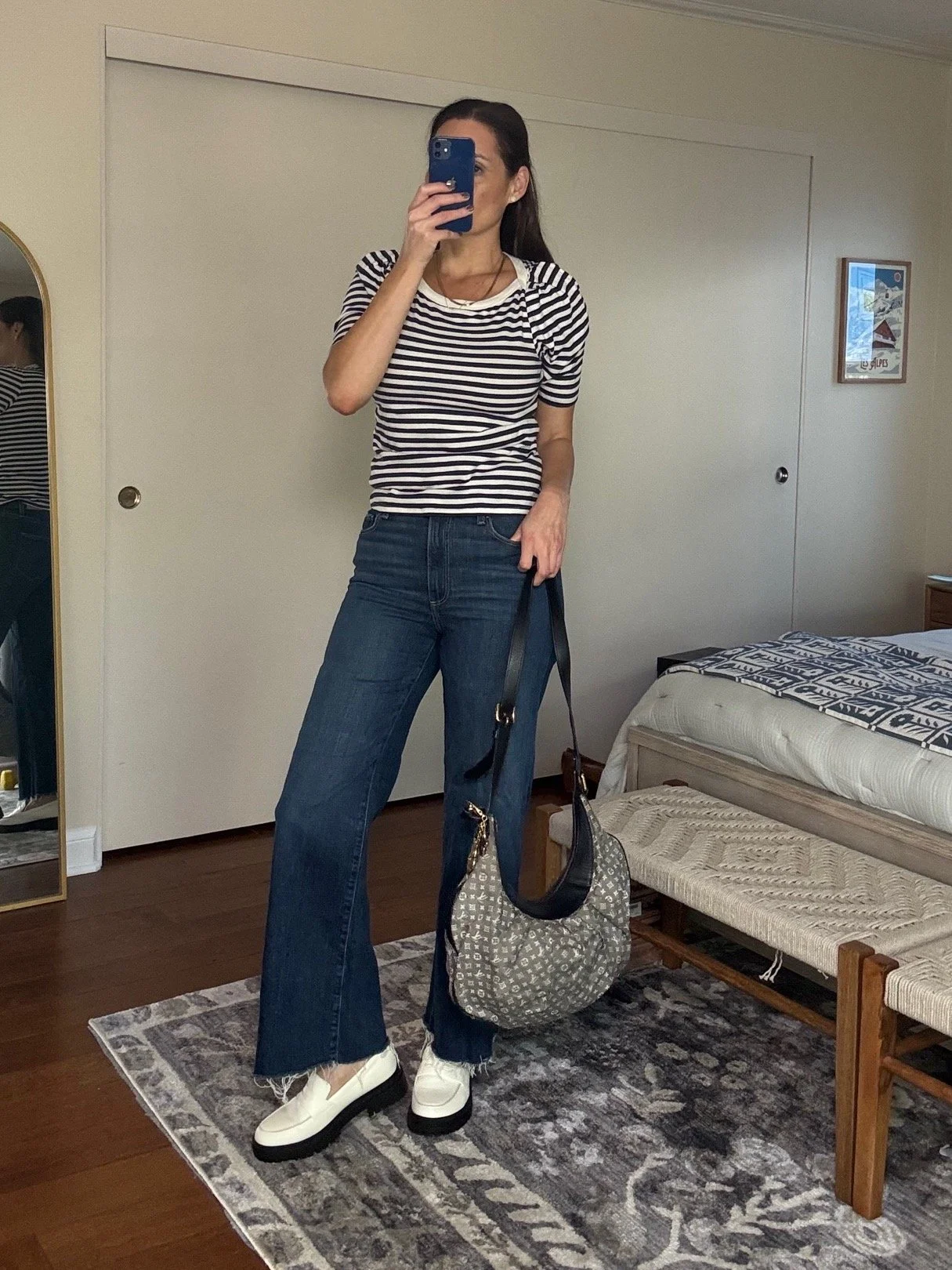 If you hate showing your arms, this will be your new favorite t-shirt. If you get bloated everyday at 3pm for no apparent reason, this will be your new favorite t-shirt. It’s a play on a French marinière, the striped boatneck top made famous by Coco Chanel, so no matter what you look chic, chic, chic.