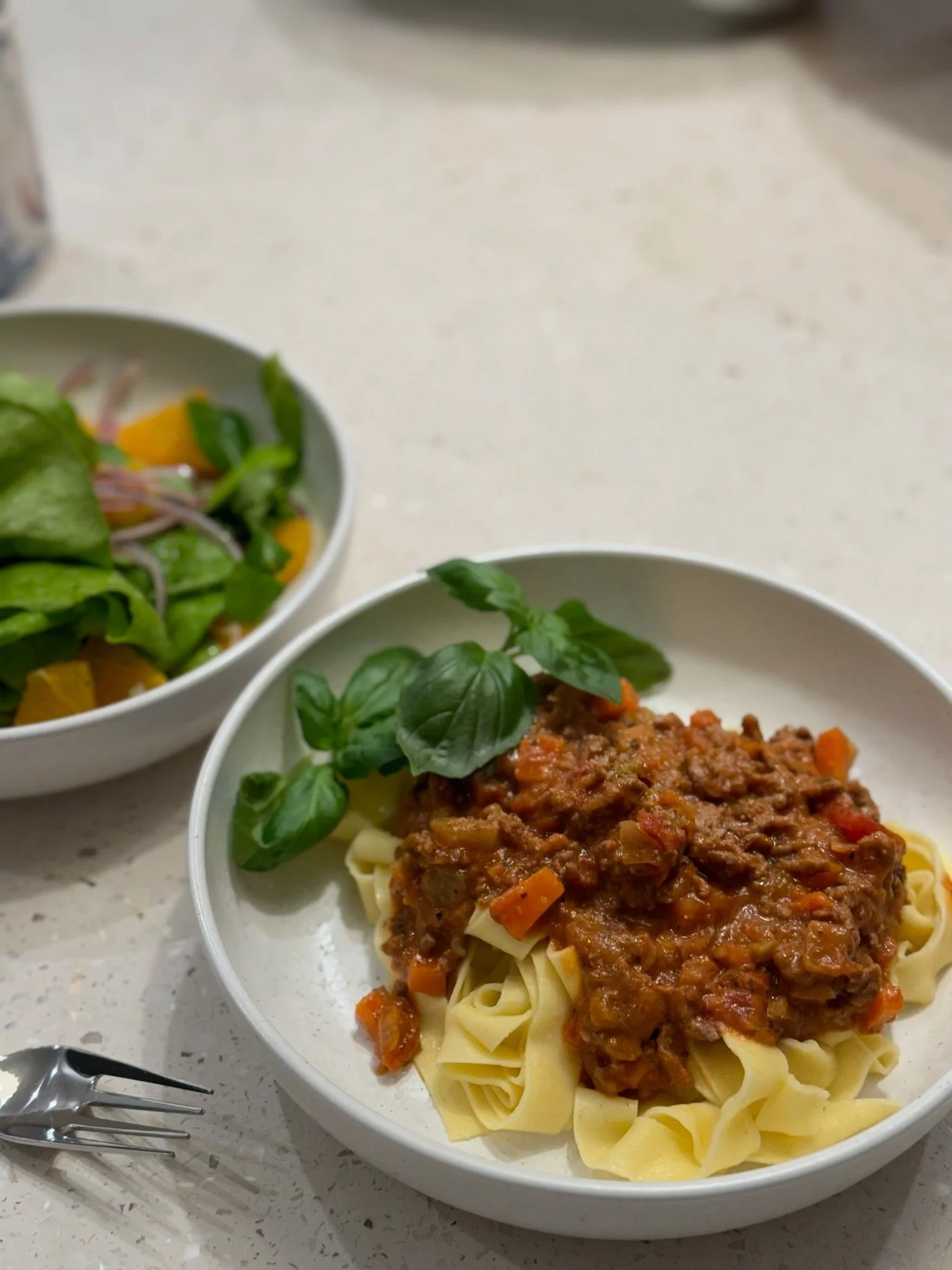 A pound of 80/20 ground beef is 1148 calories. A pound of 96/4 ground beef is 520 calories. That’s more than HALF the calories! Which you know because you can do math. That is an enormous discrepancy. And it’s also why eating out is so profoundly difficult when you’re trying to stay in a calorie deficit—something you need to just bake into the day when you are. Because we promise you that no restaurant is using 96/4. But the truth is, when you use it at home for bolognese, or tacos, or even for burgers (we doctor ours with one egg and some yellow mustard which is a creamy revelation, try it) you just won’t notice a single difference. And beef is very, very filling.