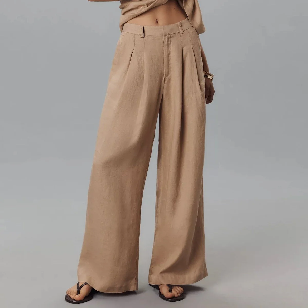 WHAT: The Avery Linen Pleated Wide-Leg Trousers by Maeve*