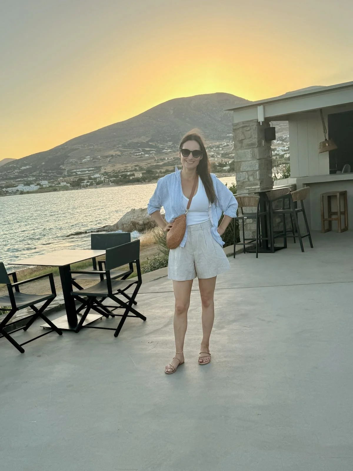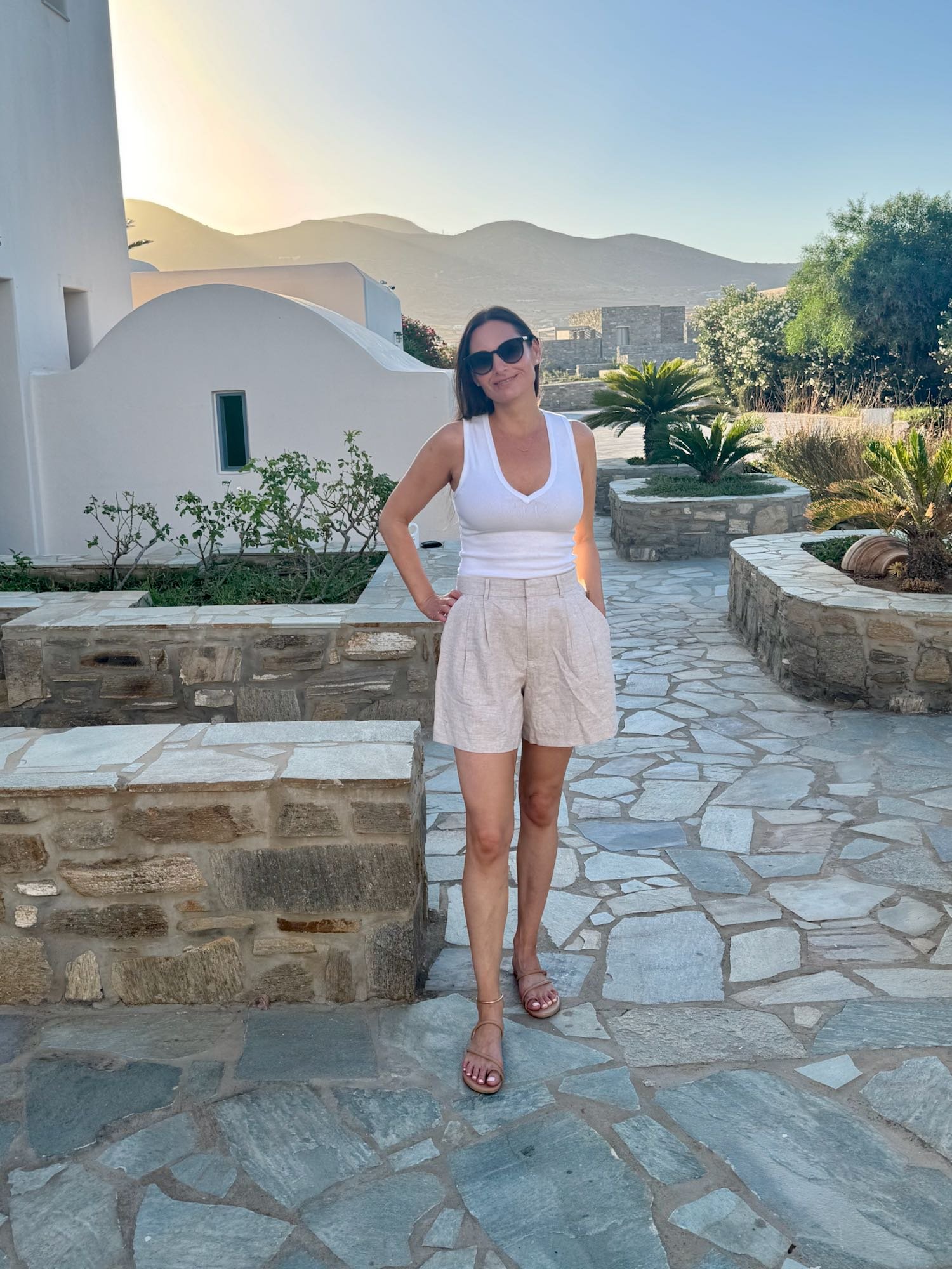 And here it is with the same shorts from above (yes, our managing editor owns them in multiple colors and yes, they’re the only shorts she packed for her summer vacation).