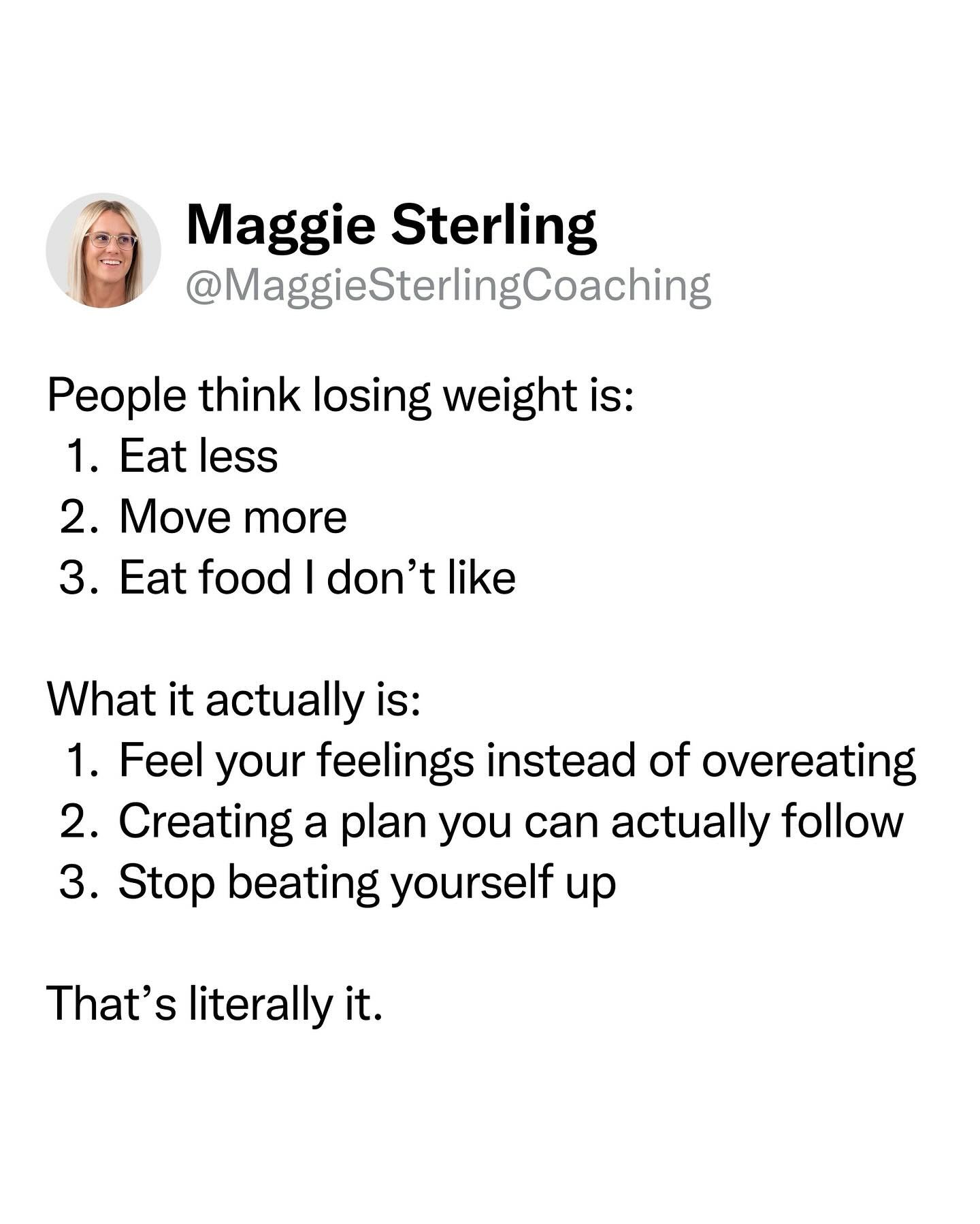 It’s an idea we got from Maggie Sterling, a self-described “weight loss coach who loves food.” And listen, we usually try to stick to registered dieticians to get our nutrition advice, just because there is so much unsubstantiated information out there, but we found Maggie’s words along with her attitude toward food to be interesting.