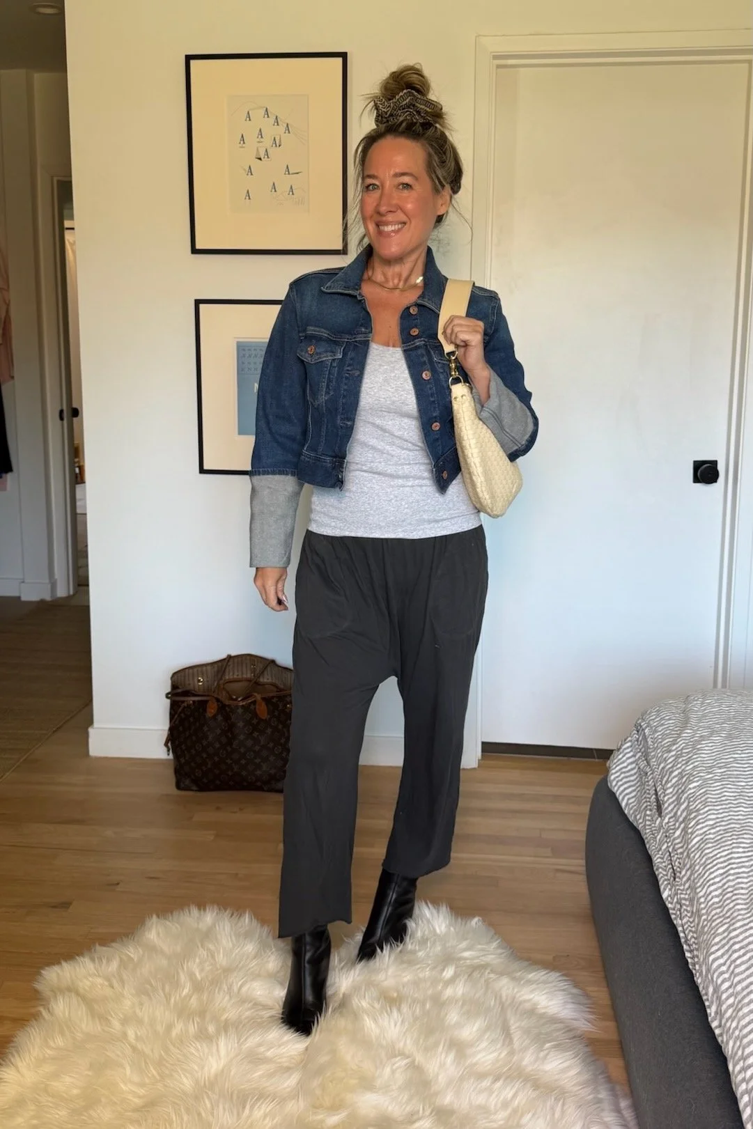 Why I love it: It’s 90% about the crop. I crow about this all the time and if you have even a shred of trust for me when it comes to how to dress like you’re not desperately clinging to your youth but also don’t want to look like a boring matron, you’ll need me when I say this: crop. is. your. friend. Yes, even if you have a pooch. When we wear crops, they hit us at the smallest part of our waists regardless of pooch existence and it makes our legs look longer, and our entire bodies look more lithe.