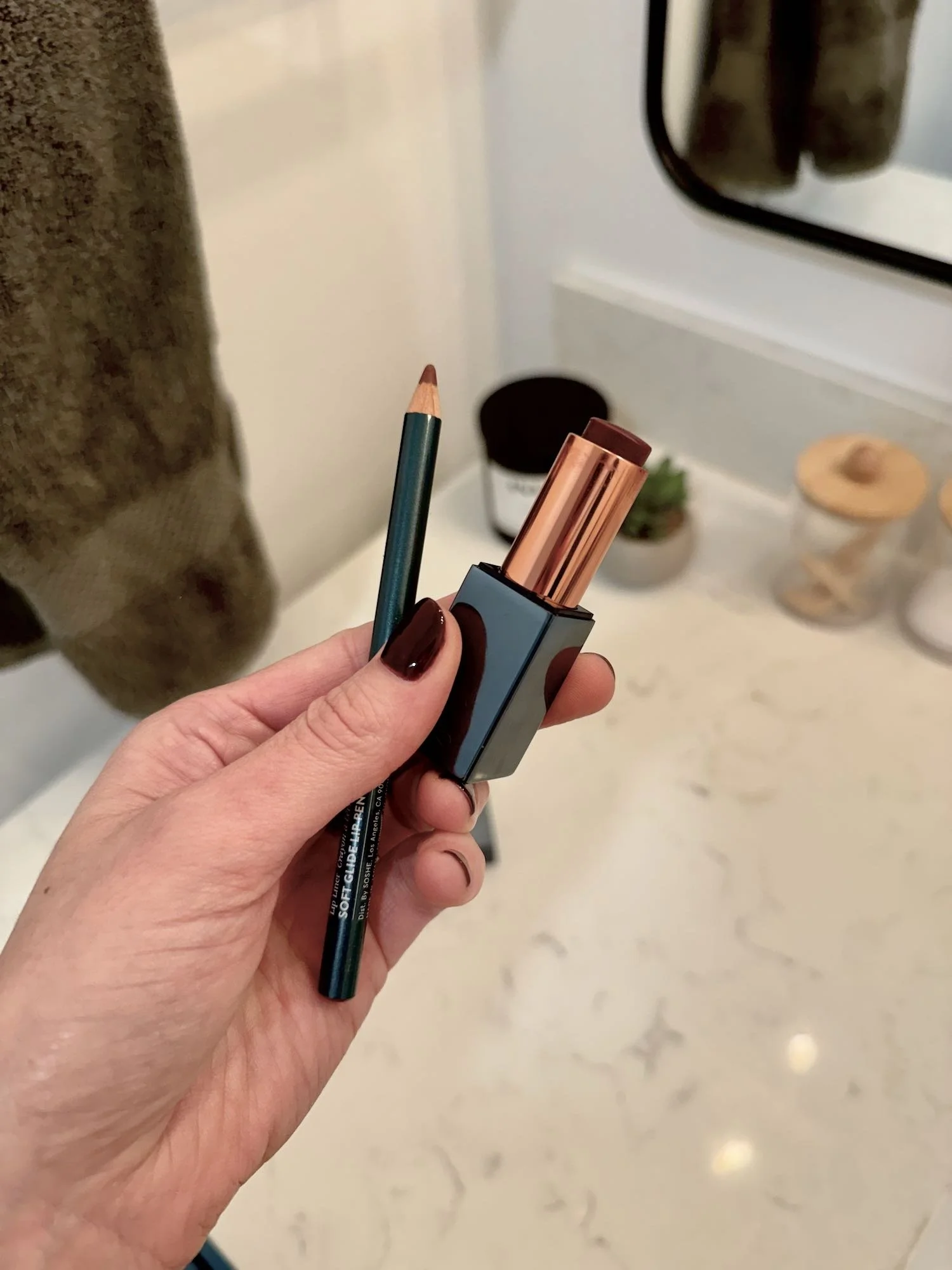 WHAT: Merit Signature Lip Liner in Bespoke* and The Outset Lip Oasis™ Glossy Treatment in Dune*
