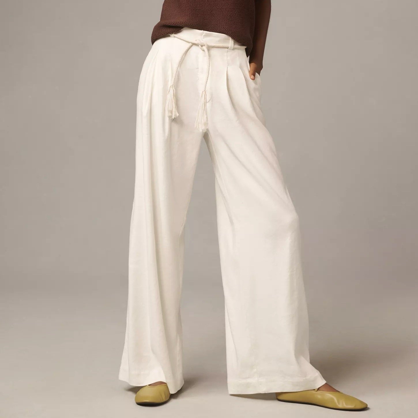 What: The Avery Pleated Wide-Leg Trousers by Maeve: Linen Edition
