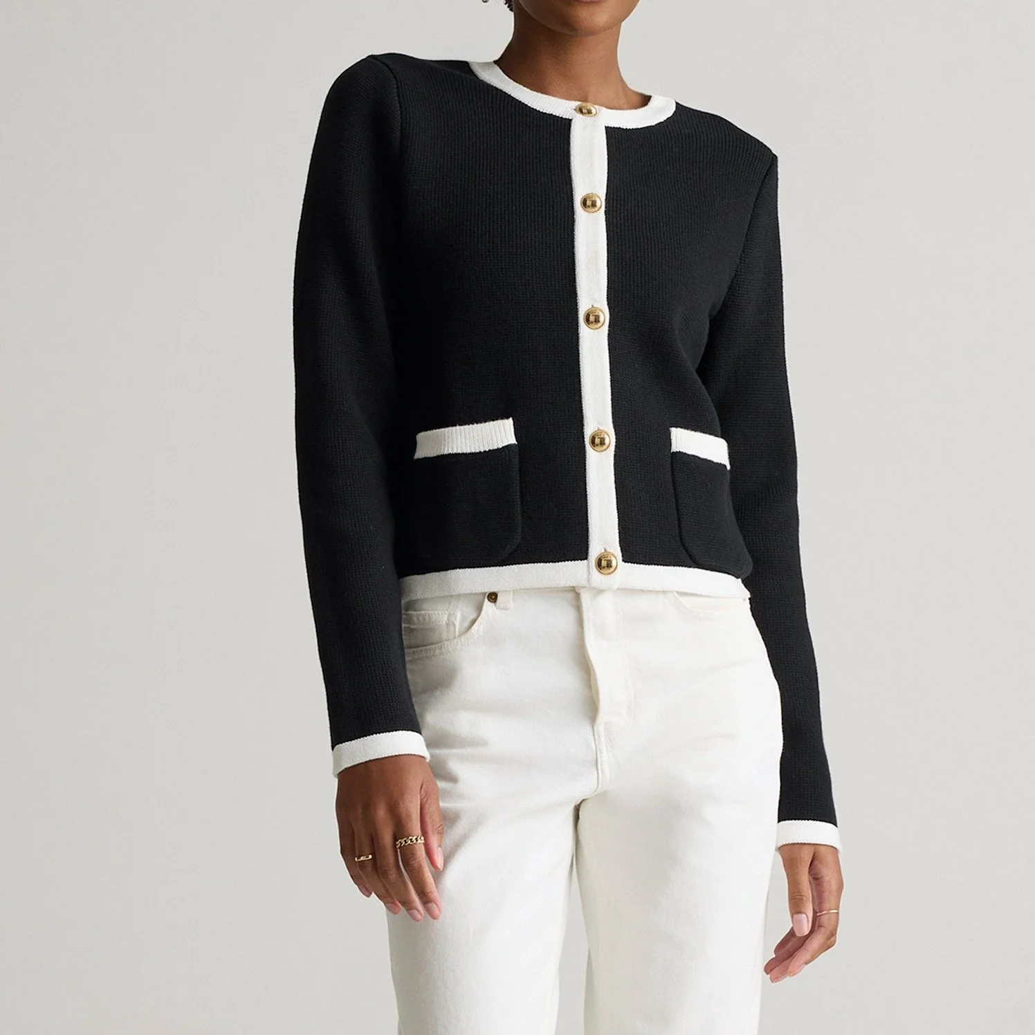 Why it works so well: A tweed lady jacket will never not be elegance itself. But obviously, it can get a little heavy come April, so that’s when we switch to this light cotton knit version. It makes all our jeans and long linen pants and solid slip skirts look like they’ve just marched themselves straight off the shopping streets of the 3rd arrondisement.