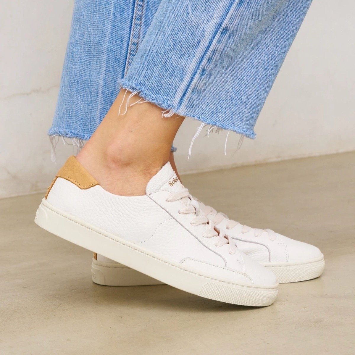 Why it works so well: French women wear graceful white sneakers with cropped jeans and slip skirts and floral dresses, and it somehow makes everything look more casual and more elevated at the same time. This leather pair from Soludos remains the gold standard. Check out the little leather detail on the heel. We die for it.