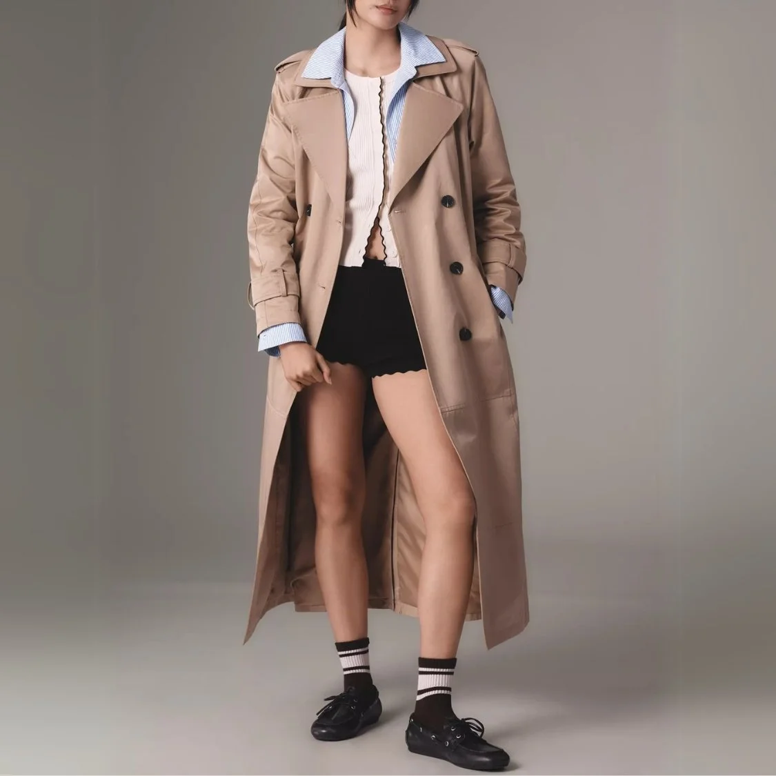 Why it works so well: Layering is like 87% of the work to looking styled on a French lady level, but often we’re too lazy to do it in a way that comes off intentional and chic. So the attached poplin collar and sleeve peeking out of this coat is a very big win for us, On the other hand, it’s removable for anytime you just want a classic camel trench to make you look primed for a rainy May bookstore-browsing day in Paris.