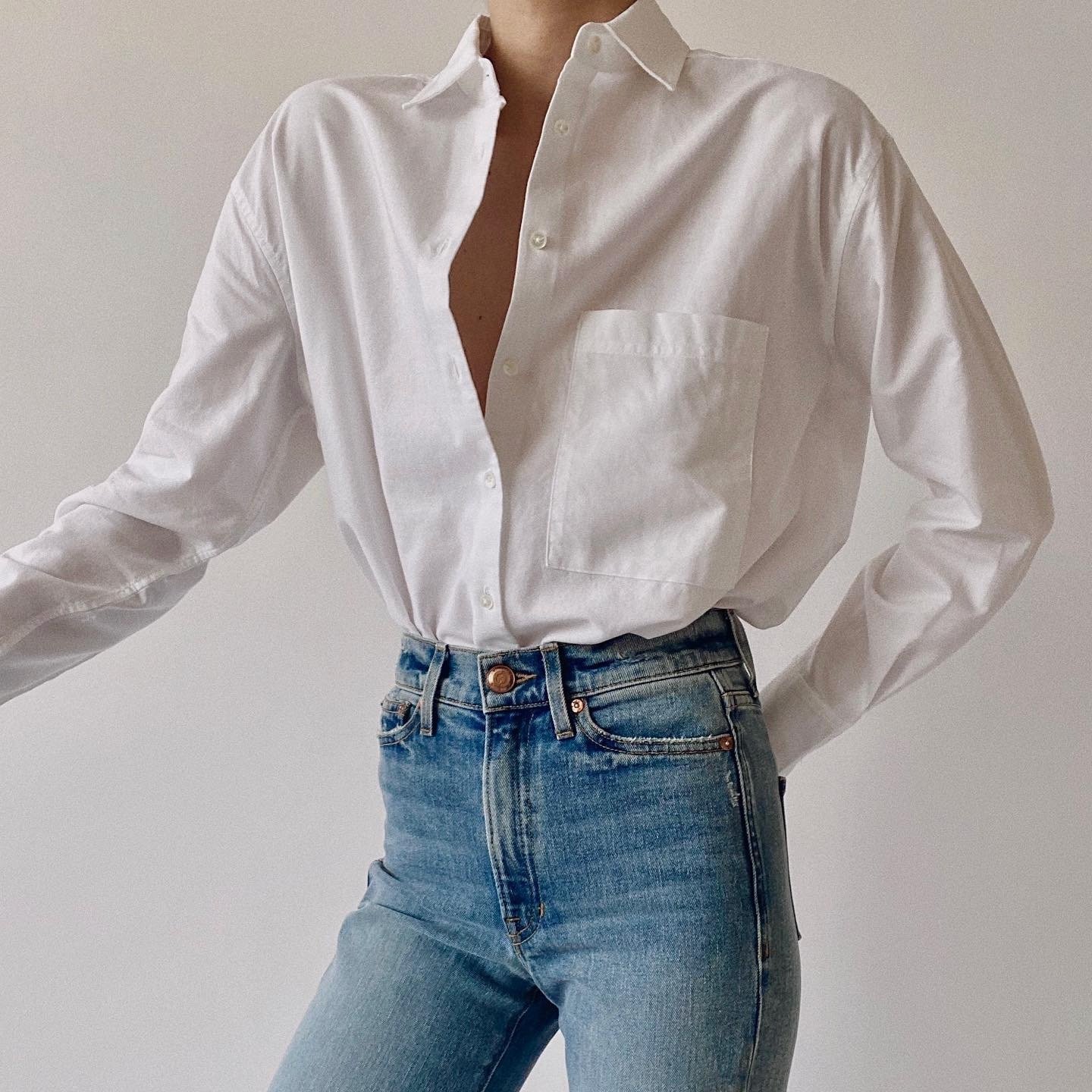 Why it works so well: Sézane is the ultimate “cool girl” brand of France. And the pieces they make are the kind of quality and design most brands are charging 3x as much for. We start with their perfect shape, cropped jean which is the daily, go-to denim cut we’ve been waiting for. Several times, we’ve asked someone where they got their amazing jeans and they’ve told us it’s this pair from Sézane. Because of their high-waisted, not-too-wide, and sliiiiiightly flared shape, they nip the tum and make legs look longer, so they really do look good on everyone.