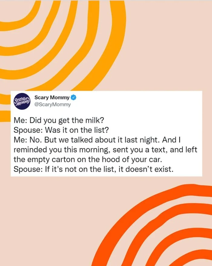 The key difference is though, no husband has ever had to “ask” his wife to remember to send the thank you cards. Or get the outfit ready for “crazy hat day” at school the next day.