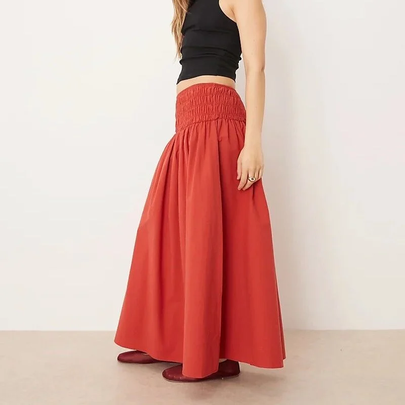 Asos Design shirred waist maxi skirt in red