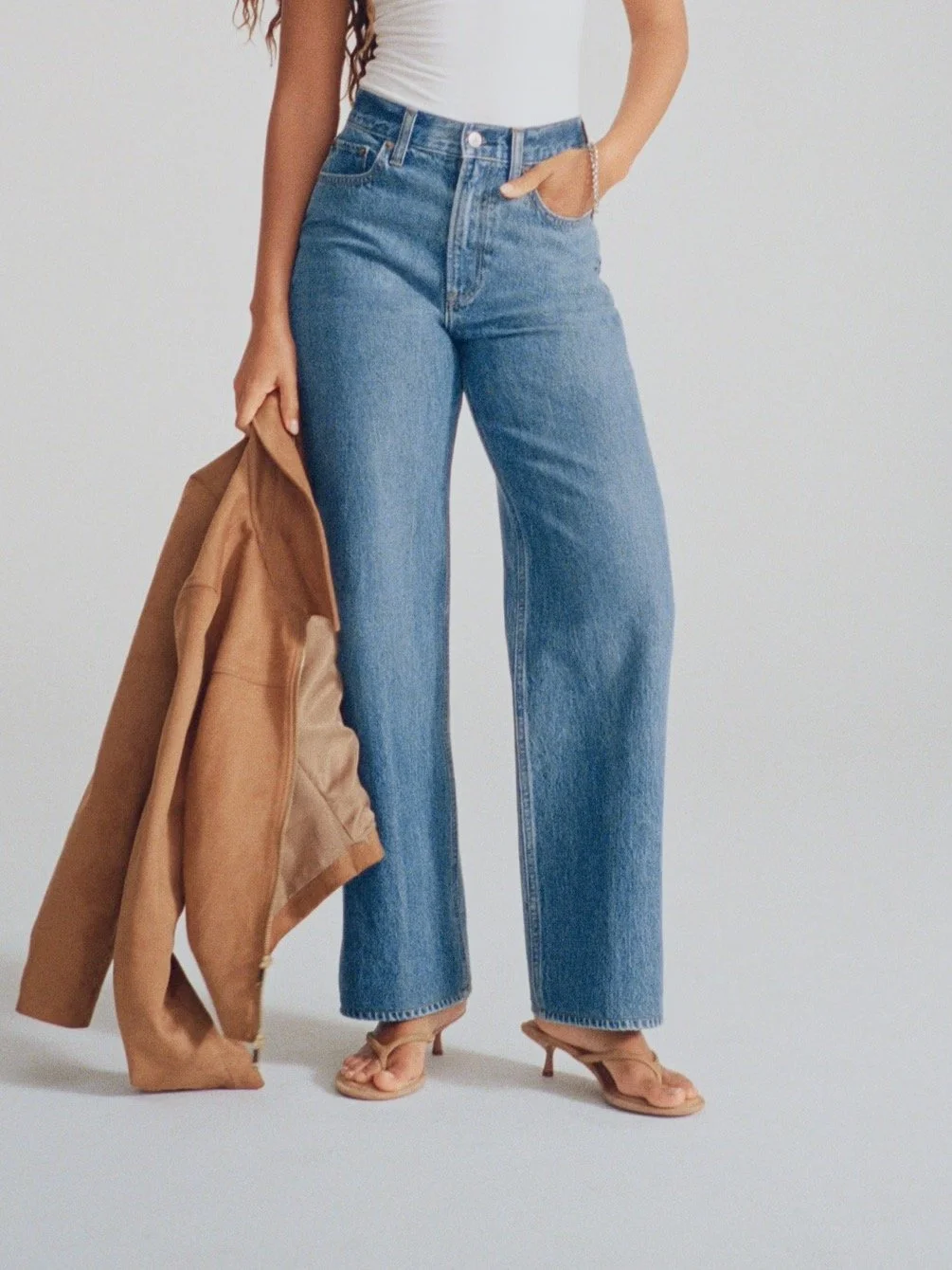 THE CURVE LOVE*: Abercrombie’s curve-love jeans fit curves like nothing else. These jeans are gorgeously flattering hip-to-toe - a perfect starter jean for women who fear the wide-leg.