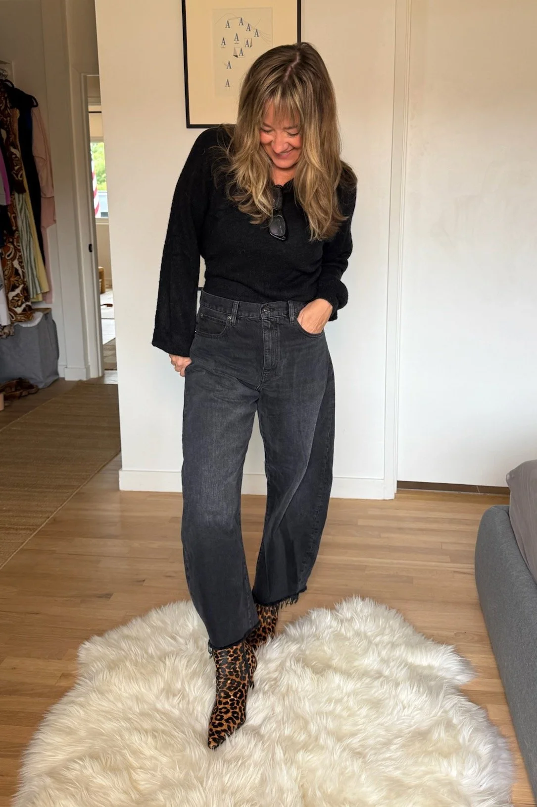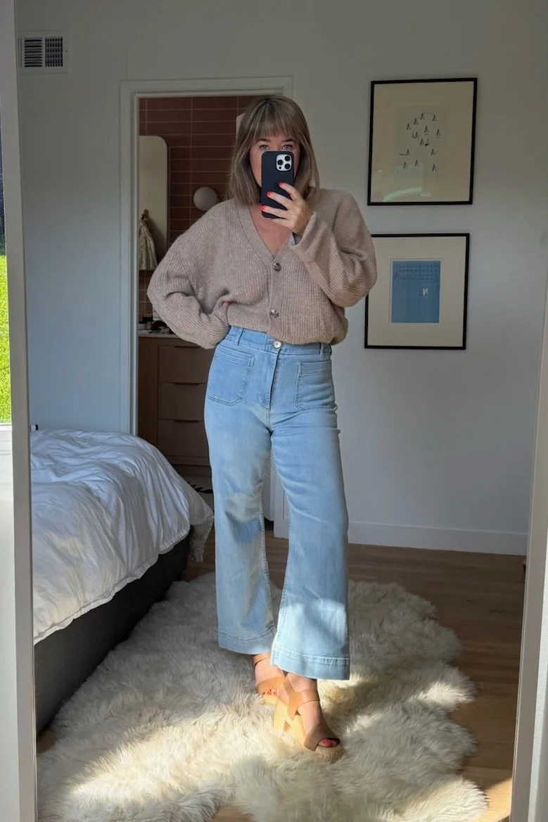 That said, there is definitely an appeal to the wide-leg. They’re roomy (who doesn’t love the ability to breathe in jeans?) They’re useful, covering lumps, bumps, and panty lines. They make us look styled, balancing out more fitted tops and giving off trouser vibes.